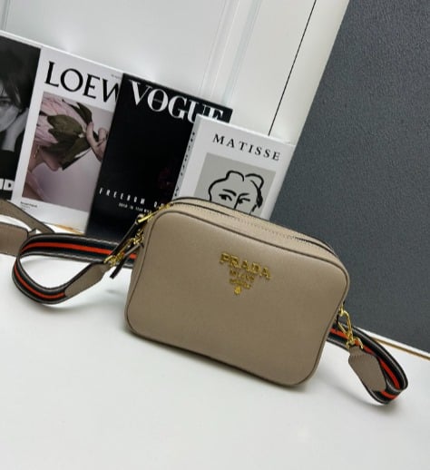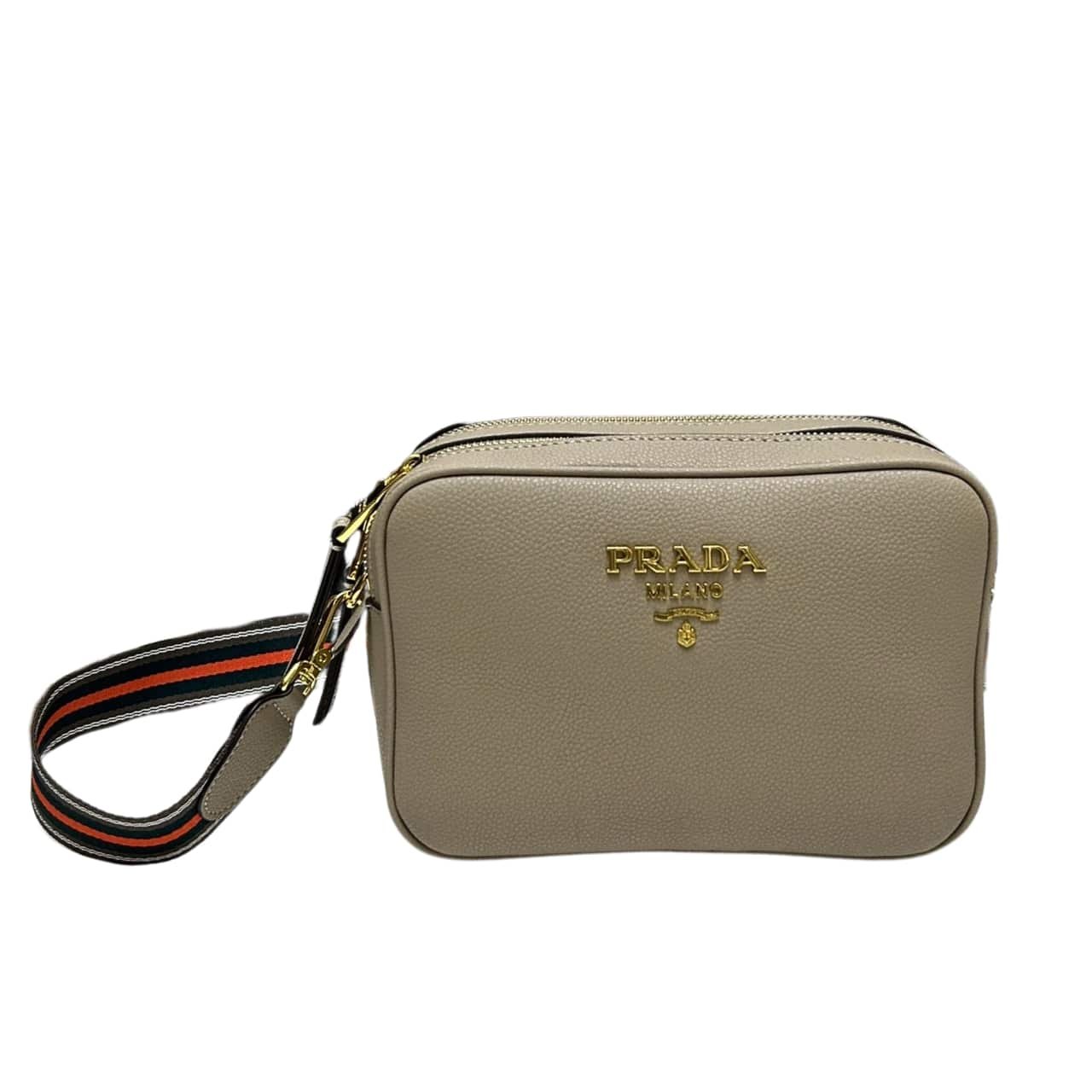 Prada Vitello Crossbody Bag Beige Gray 23Cm