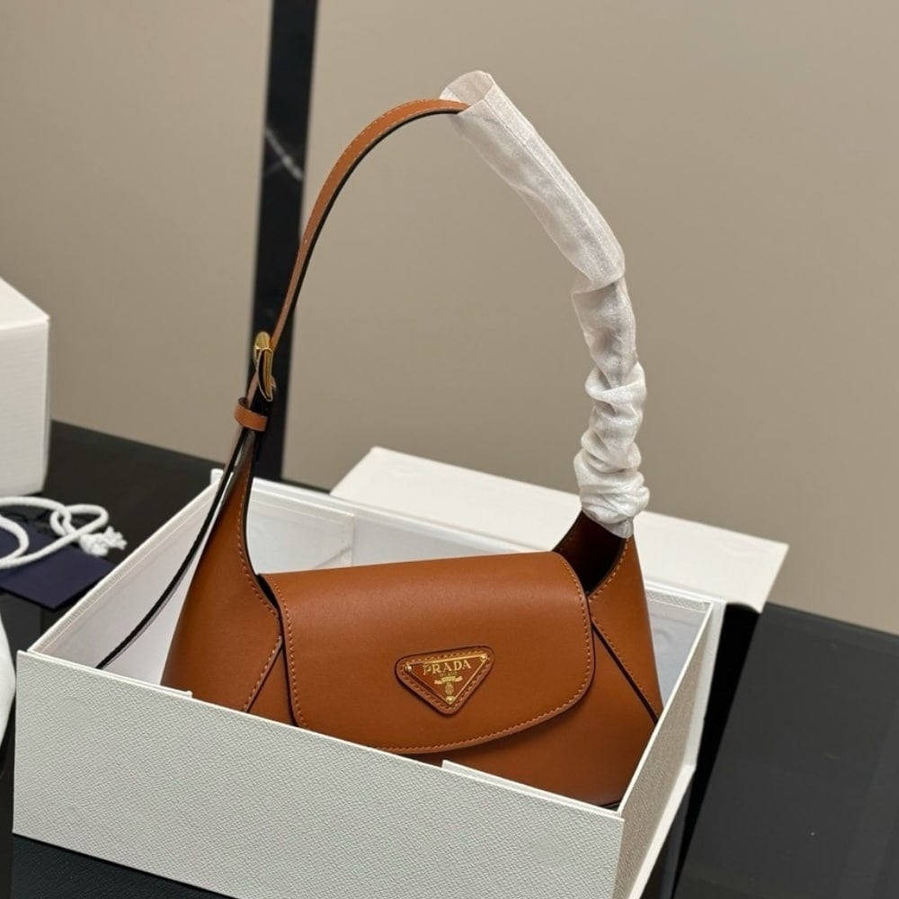 Prada Triangle Logo Shoulder Bag Caramel 24Cm