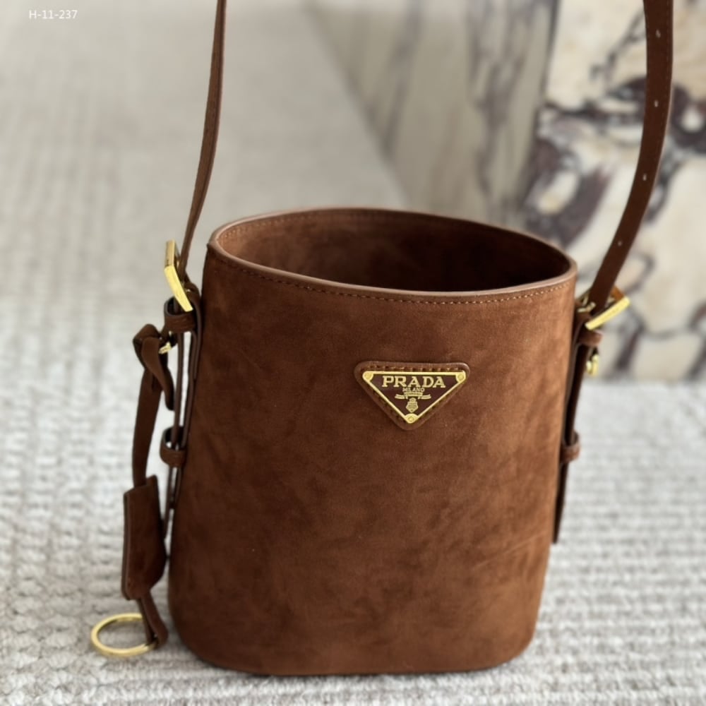 Prada Small Suede Bucket Bag In Brown 20Cm