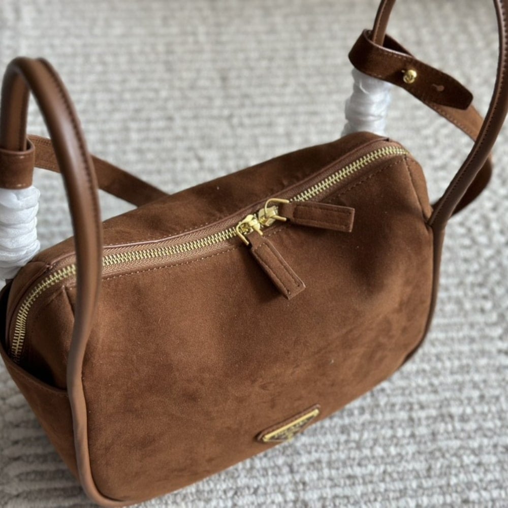 Prada Suede Hand Bag Cocoa Brown 26Cm