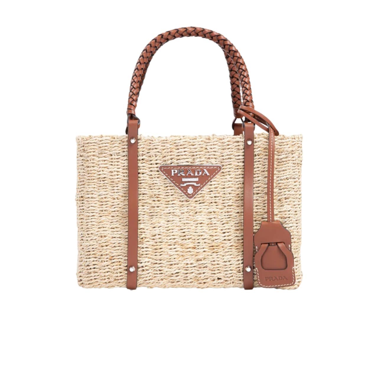 Prada Two Tone Woven Tote Bag In Multi Natural 28Cm