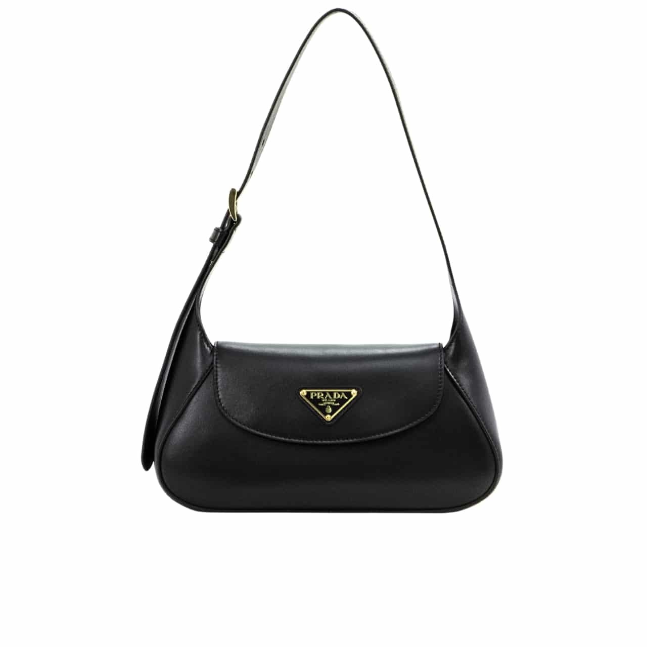 Prada Triangle Logo Shoulder Bag Black 24Cm