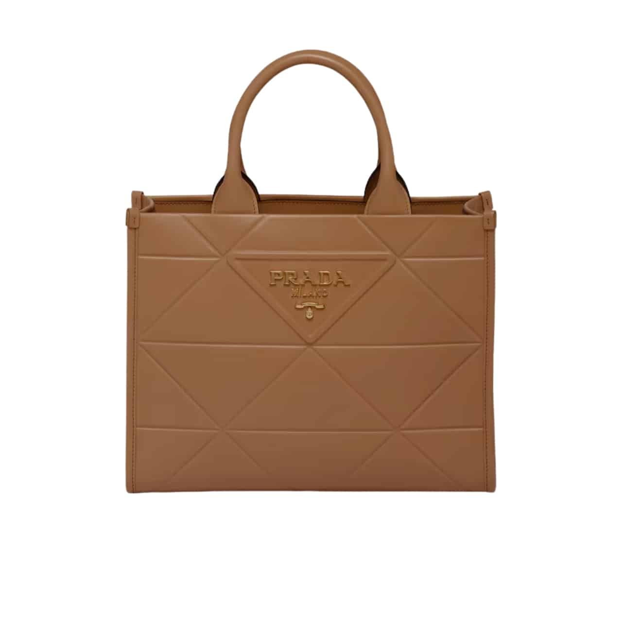 Prada Small Symbole Bag With Topstitching Caramel 28Cm