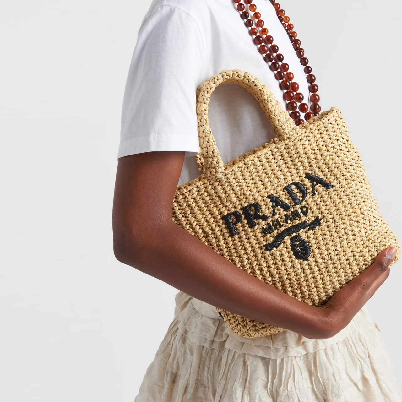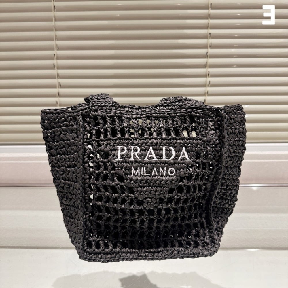Prada Small Raffia Tote Black 22cm 1Bg444