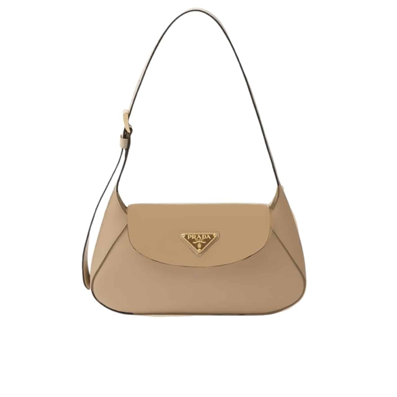 Prada Triangle Logo Shoulder Bag Beige 24Cm