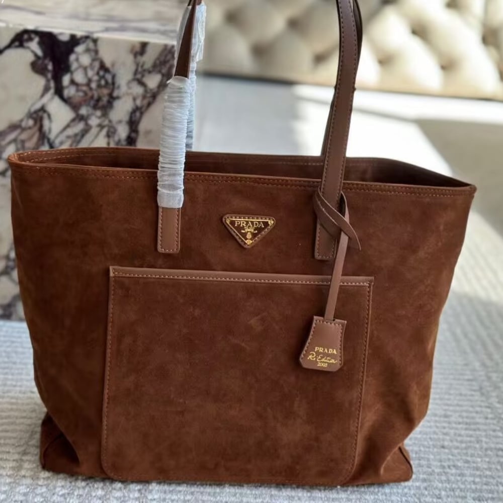 Prada Suede Tote Bag Cocoa Brown 37Cm