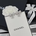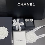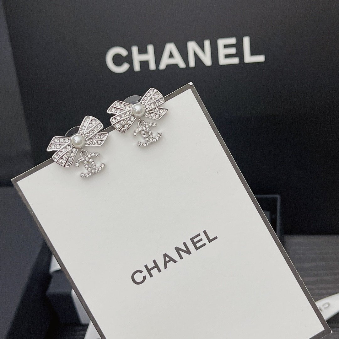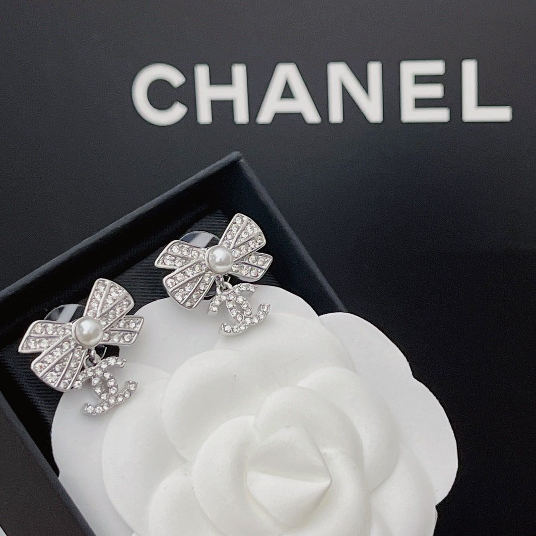 Chanel Crystal Cc Bow Drop Earrings Silver