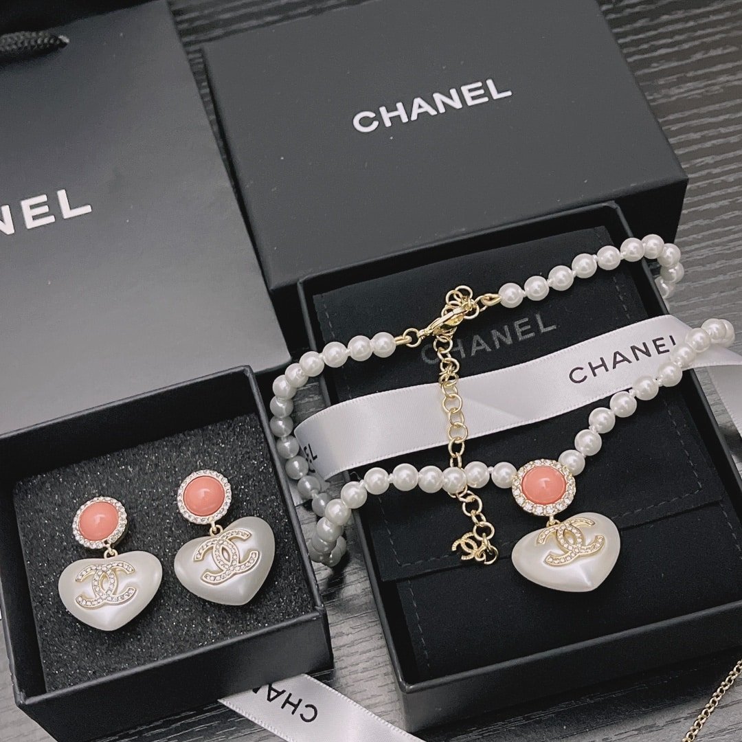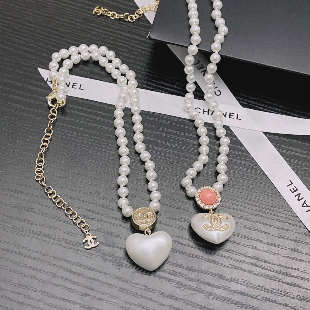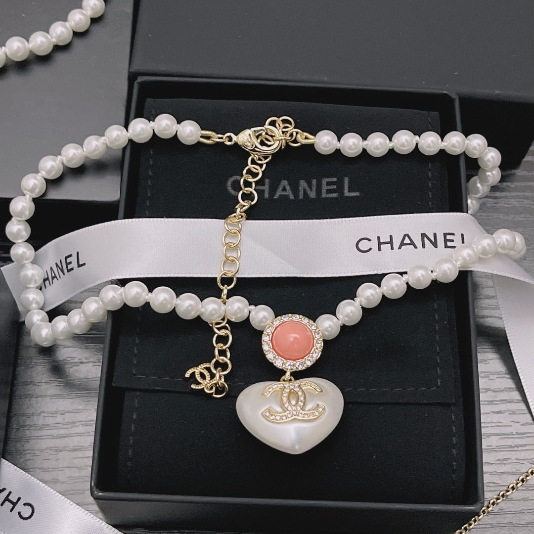Chanel Large Heart Pearl Pink Crystal Cc Necklace