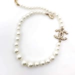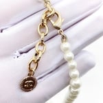Chanel Metallic Silver Tone Coco Faux Pearl Cc Necklace