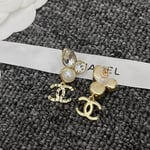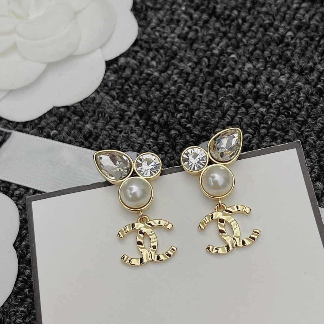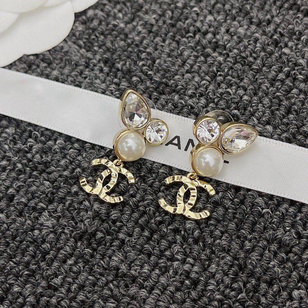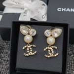 Chanel Pearl Crystal Cc Drop Earrings Gold
