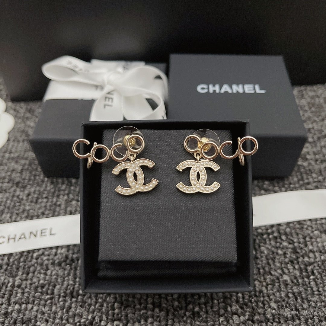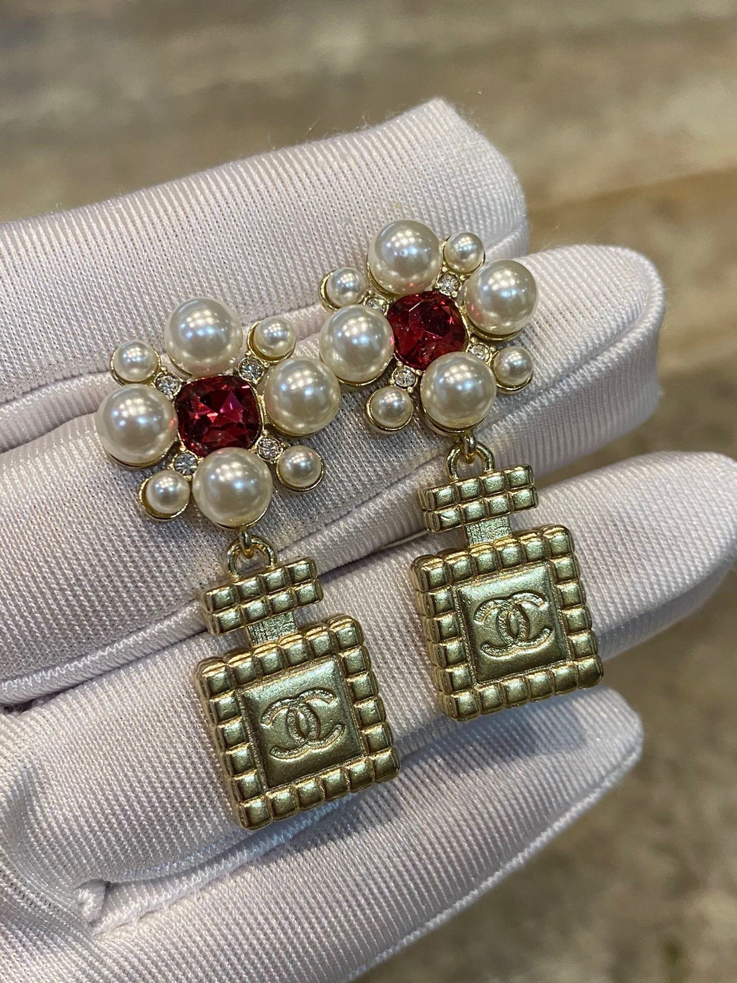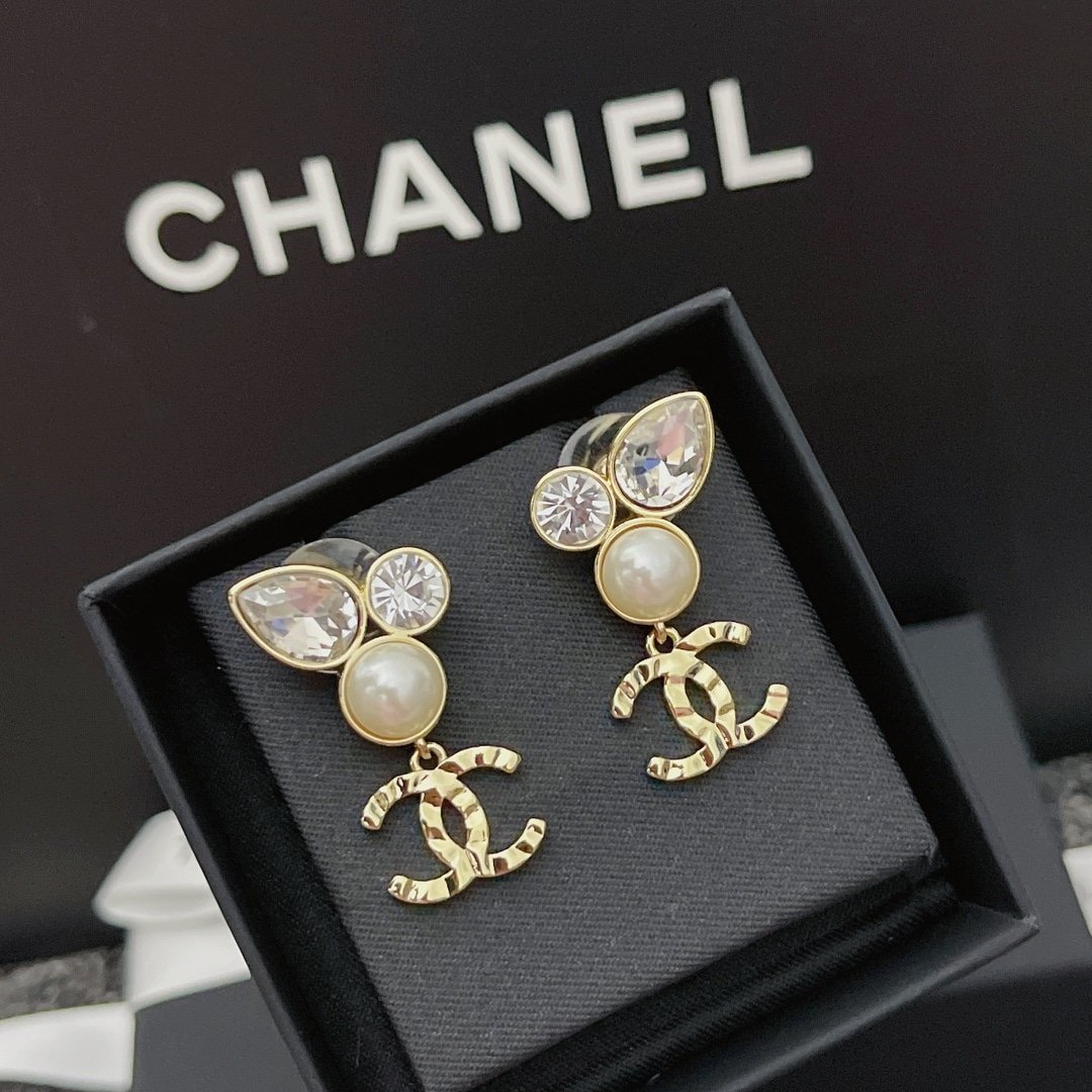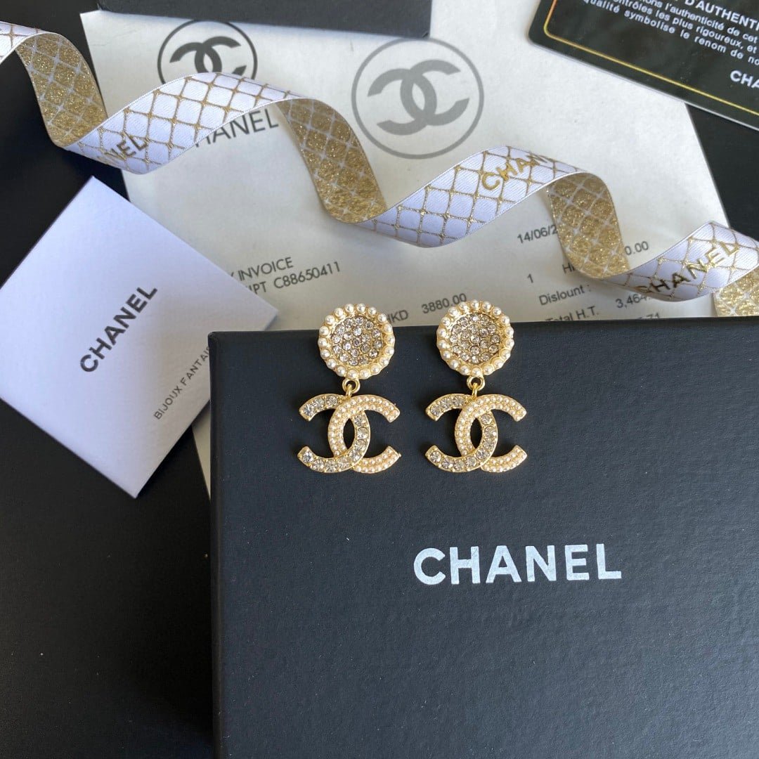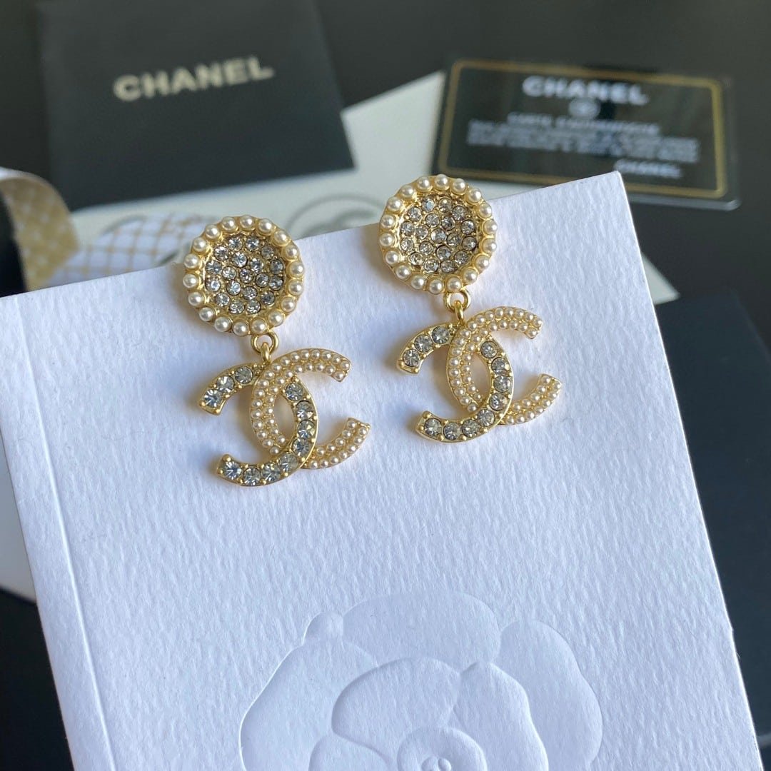 Chanel Pearl Crystal Cc Drop Earrings Gold