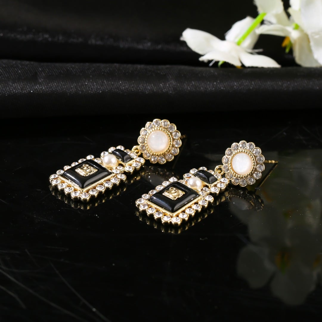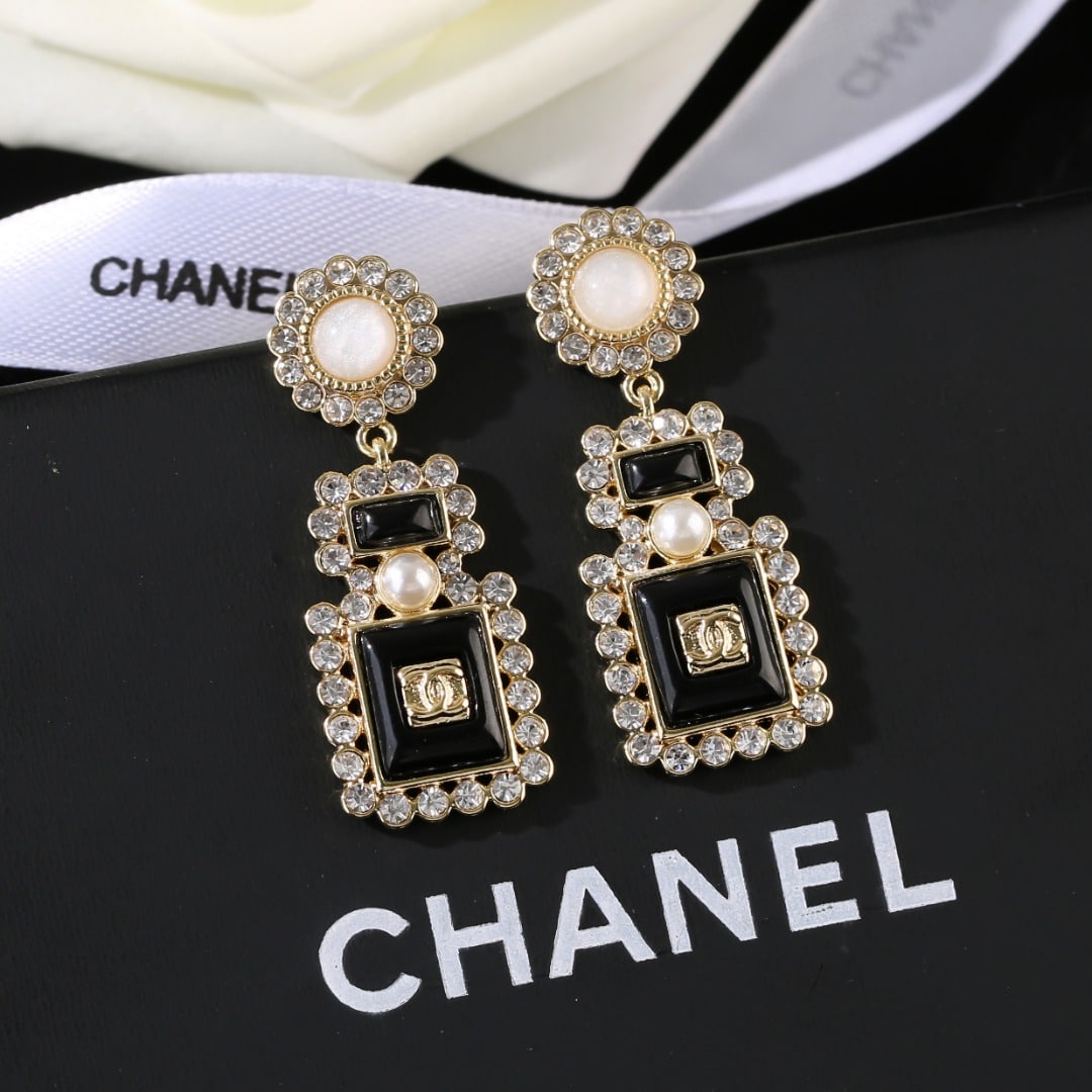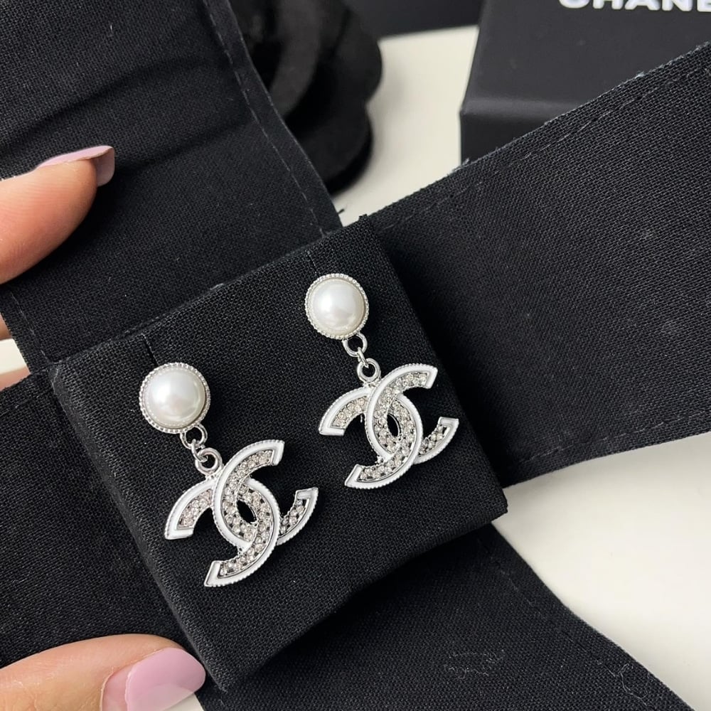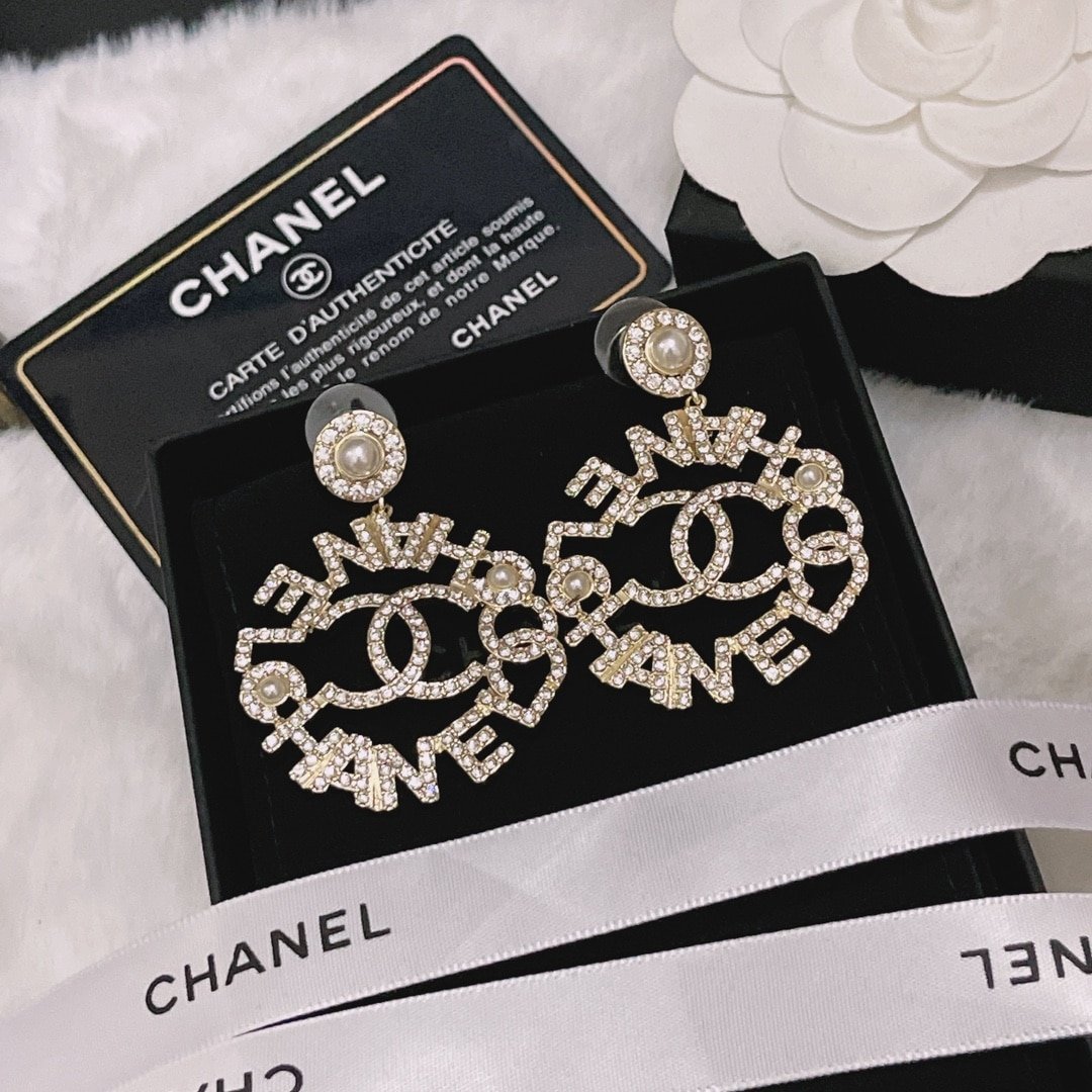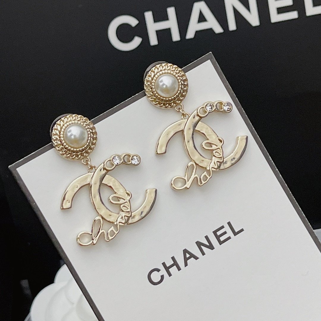 Chanel Pearl Crystal Cc Drop Earrings Gold