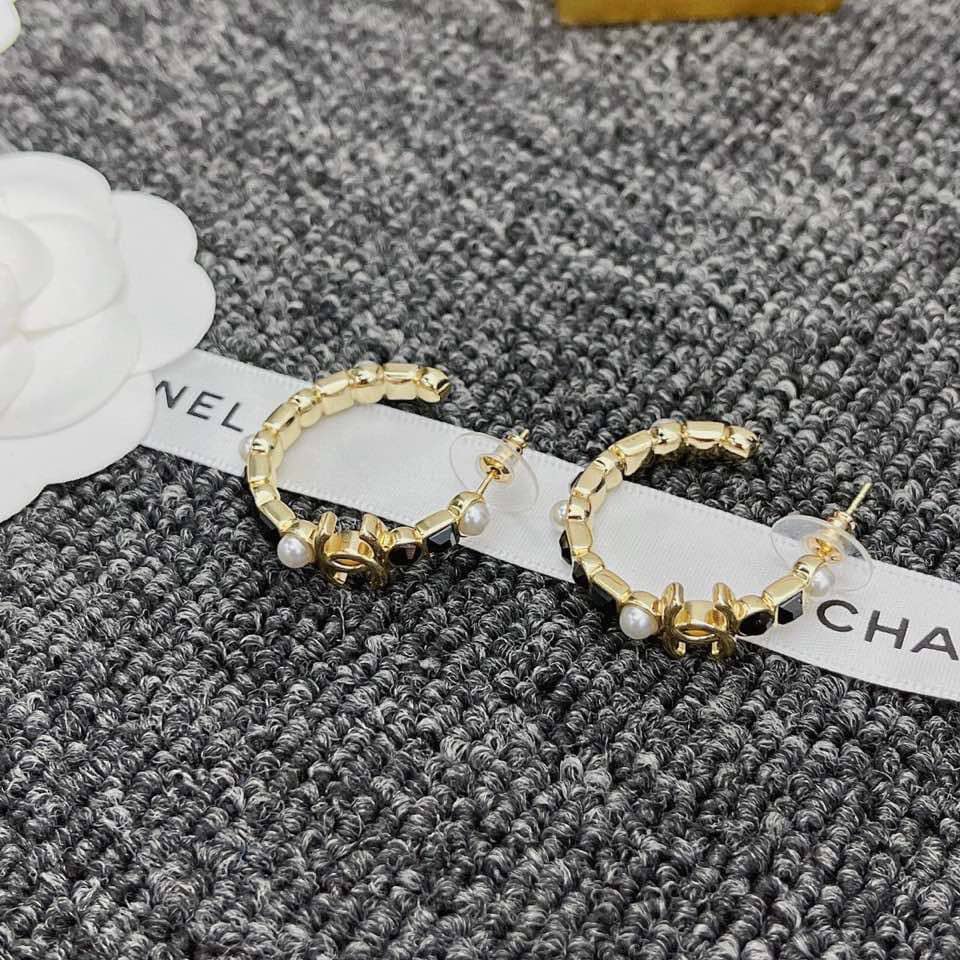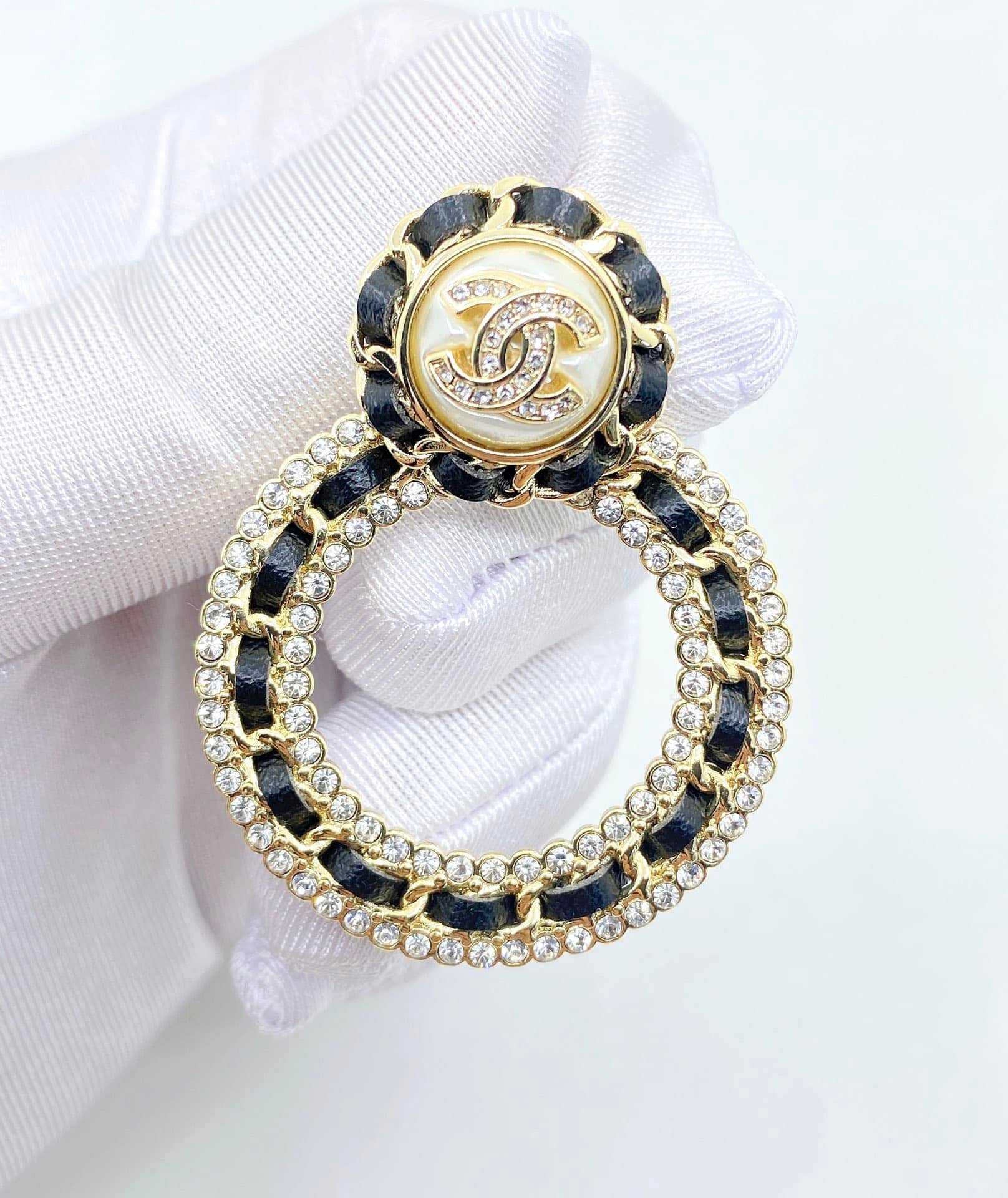Chanel Gold &Amp Black Metal Hoop Earrings