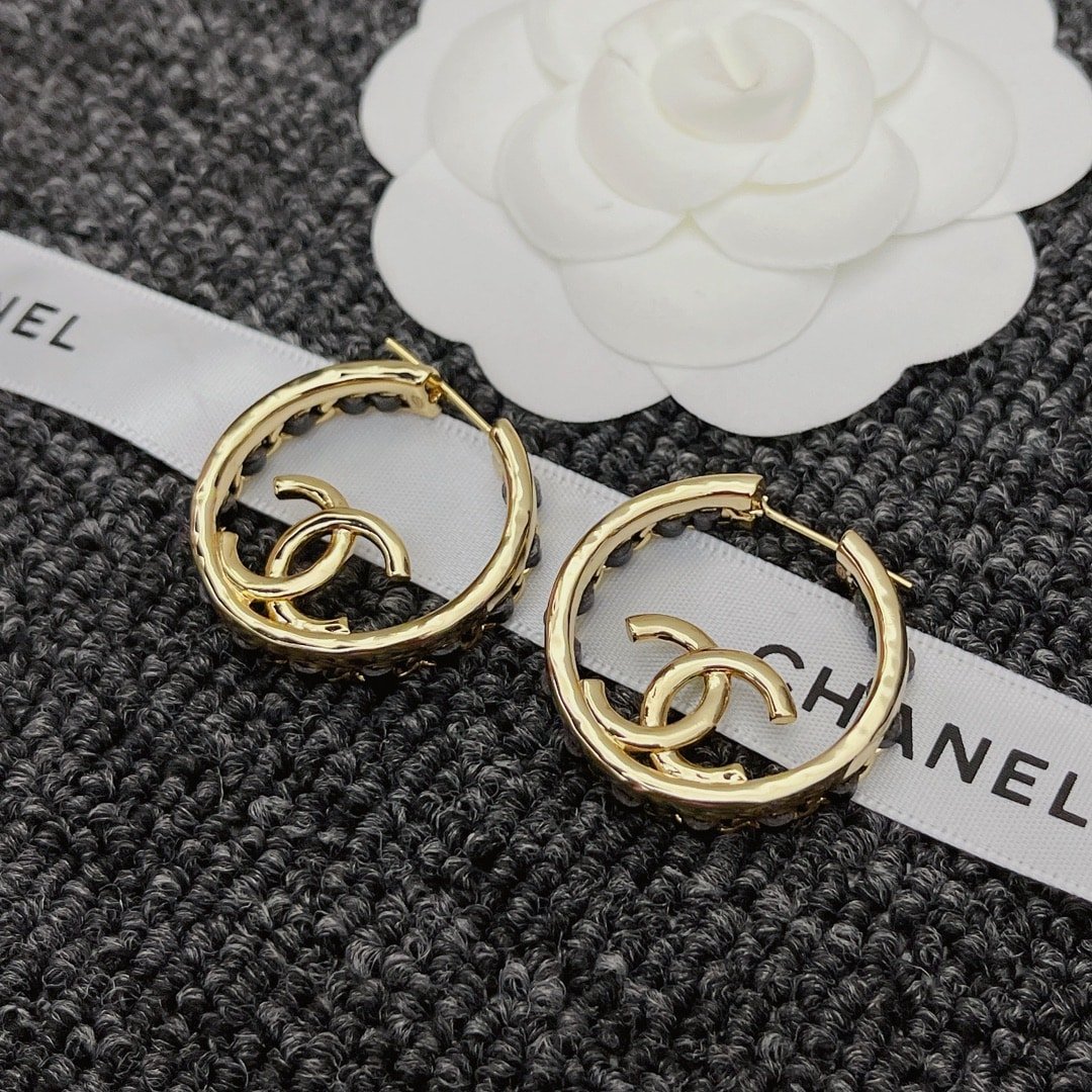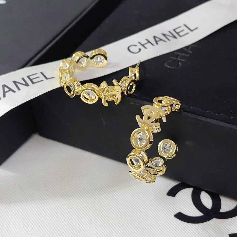 Chanel Gold Crystal Metal Strass Cc Earrings