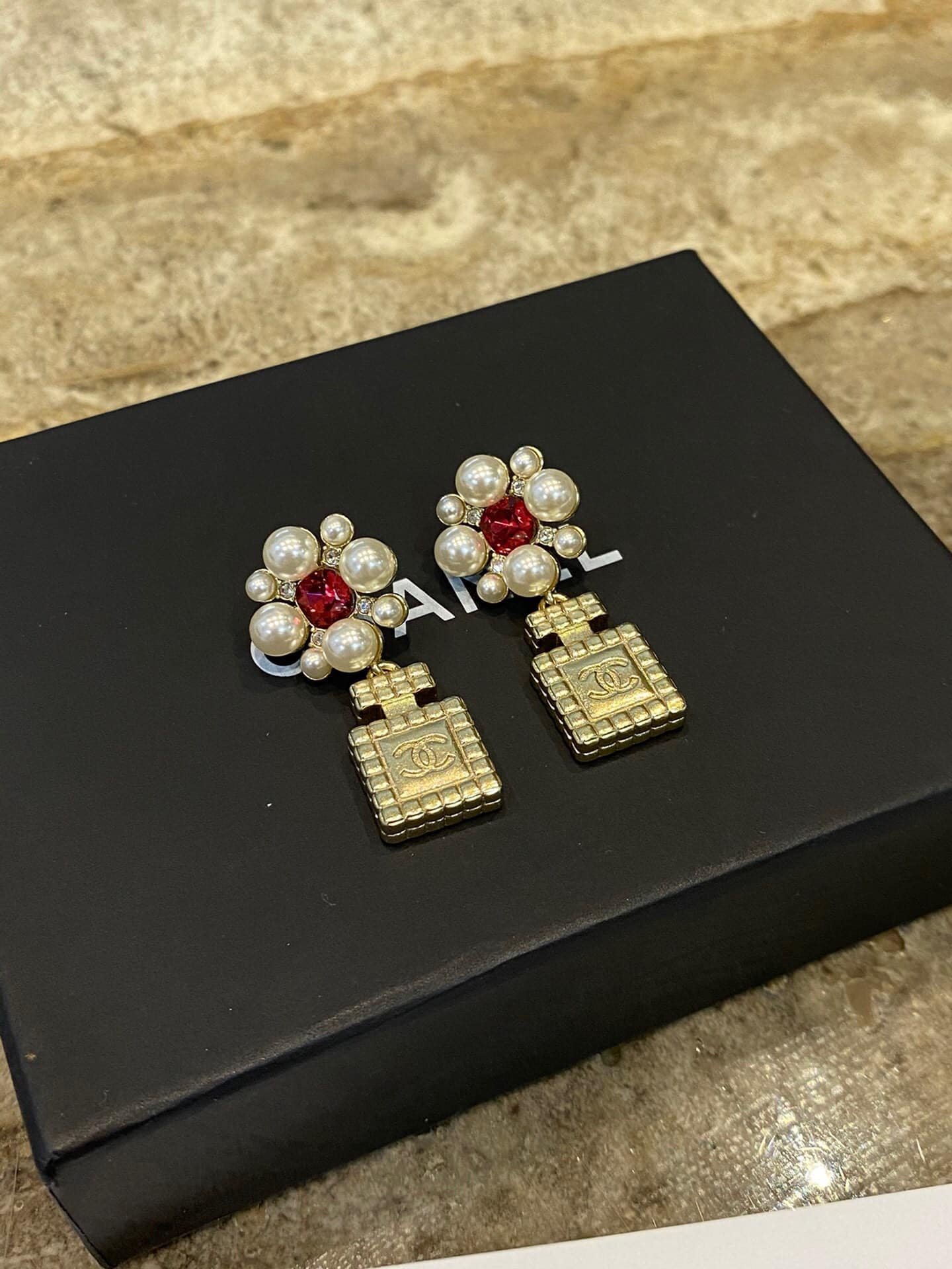 Chanel Metal And Strass Earrings Glass Pearl Gold