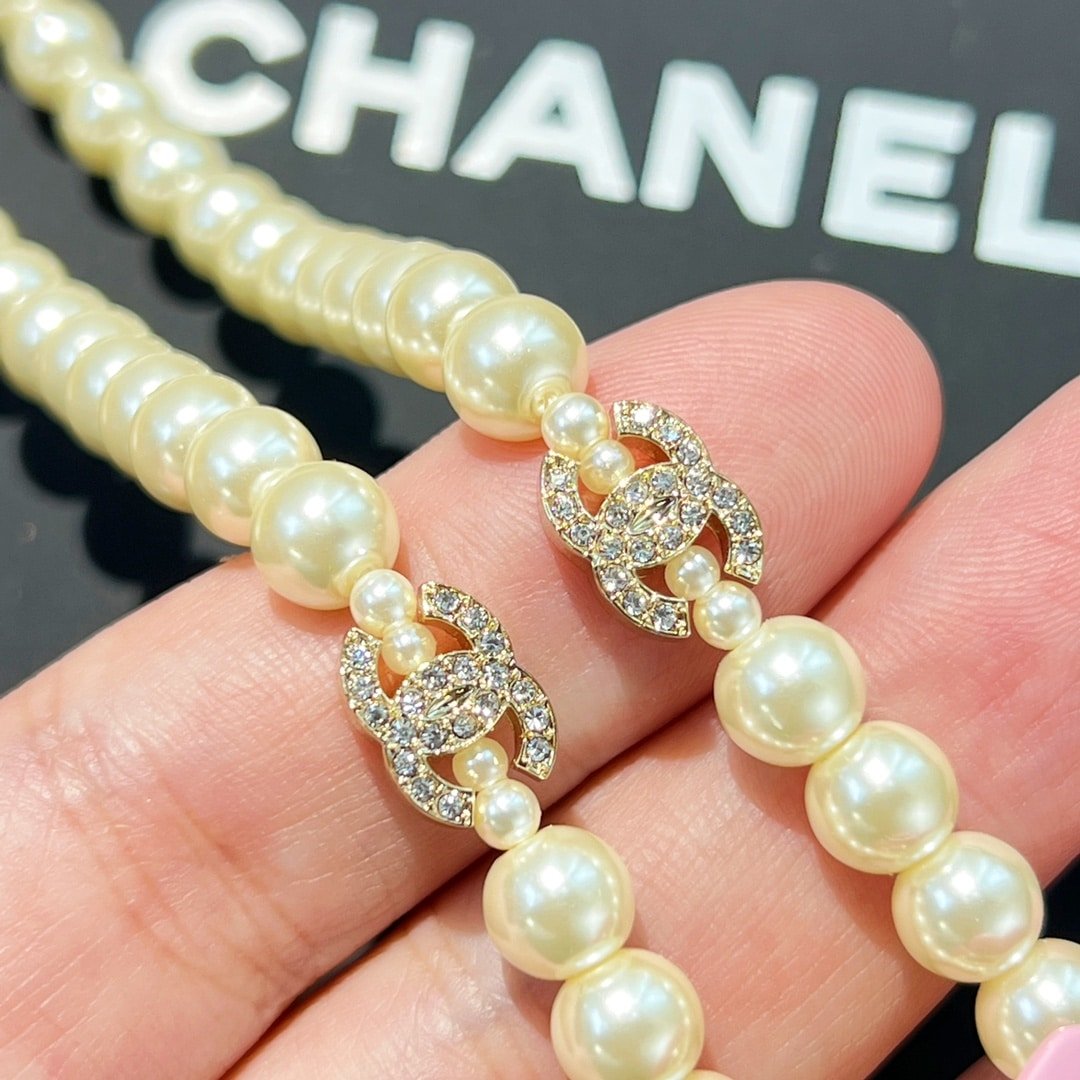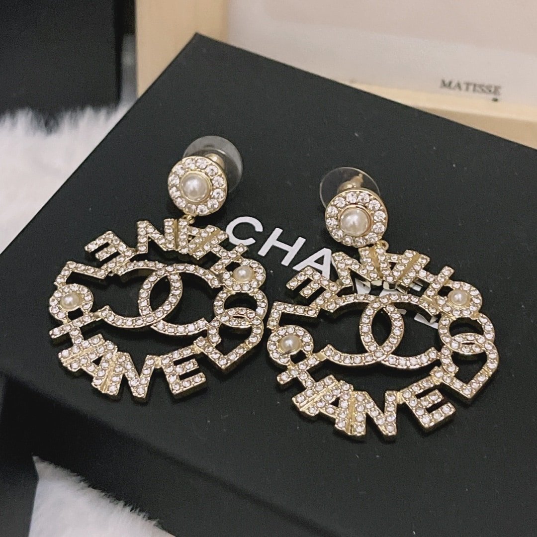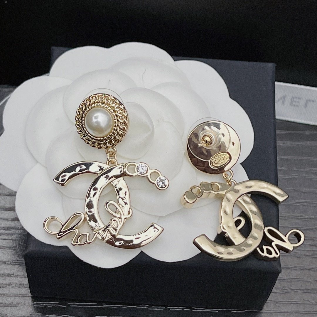 Chanel New Cc Gold Ball Crystal Pearl Drop Earrings