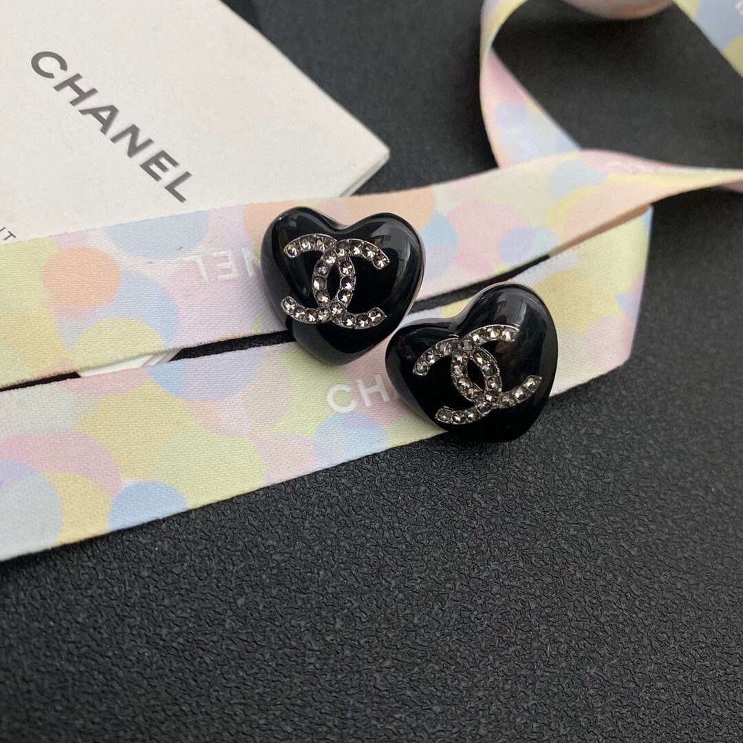 Chanel Domestic Necklace Gold Metal And Black Heart