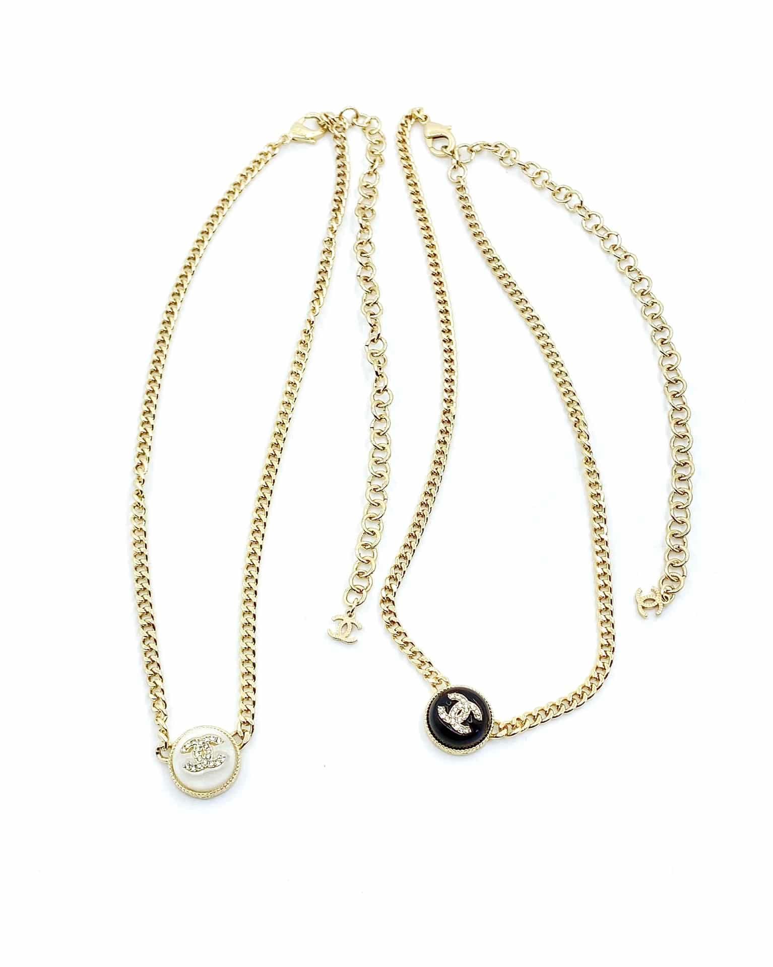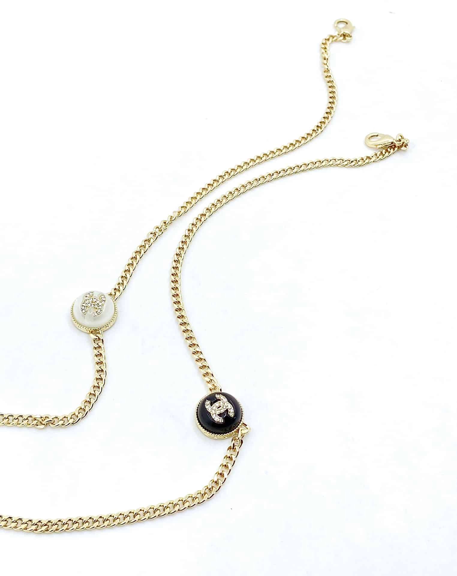 Chanel Logo Cc Necklace In Gold Metal Black Resin