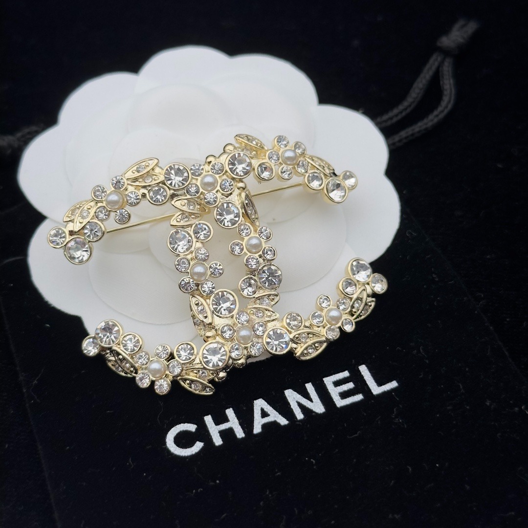 Chanel Floral Enamel And Crystal Brooch With Pearl Accents