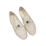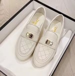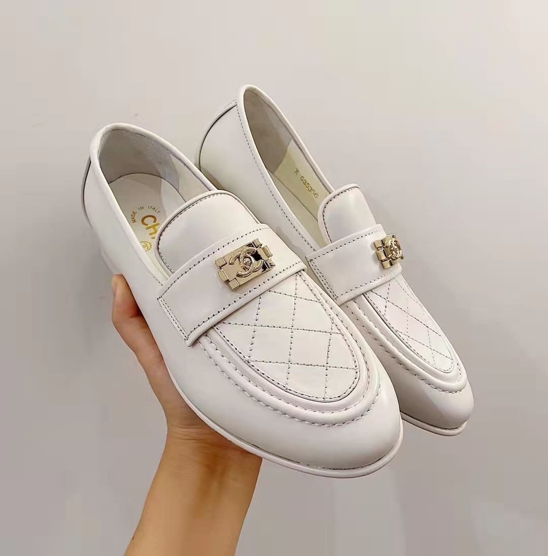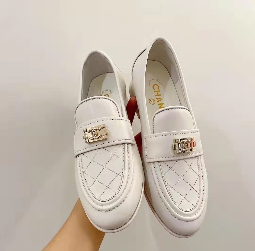 • Chanel 20B Quilted Boy Lego Metal Cc Logo Gold Mule Slip On Flat Loafers White
