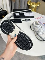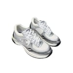Chanel 23C Silver Metallic Cc Logo Lace Up Flat Runner Trainer Sneaker White G39792 Y56368 K5451