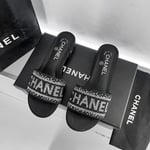 Chanel 24P Beaded Diamond Slippers Black