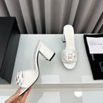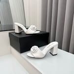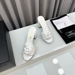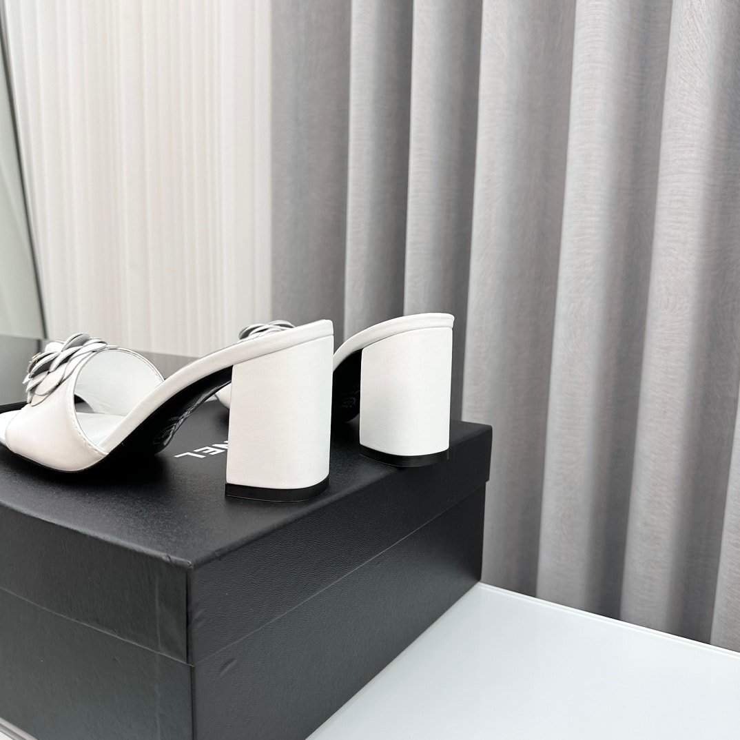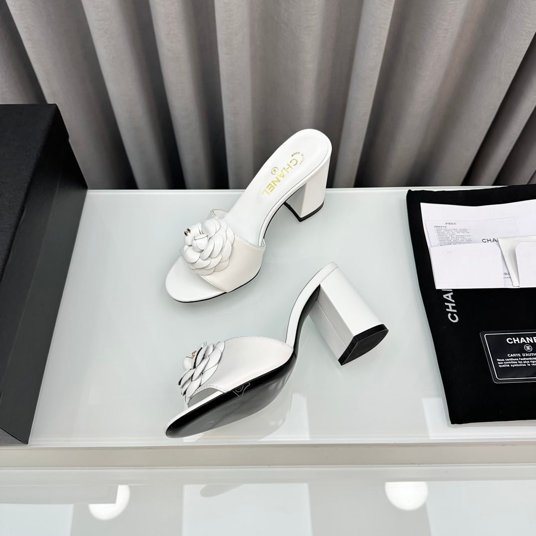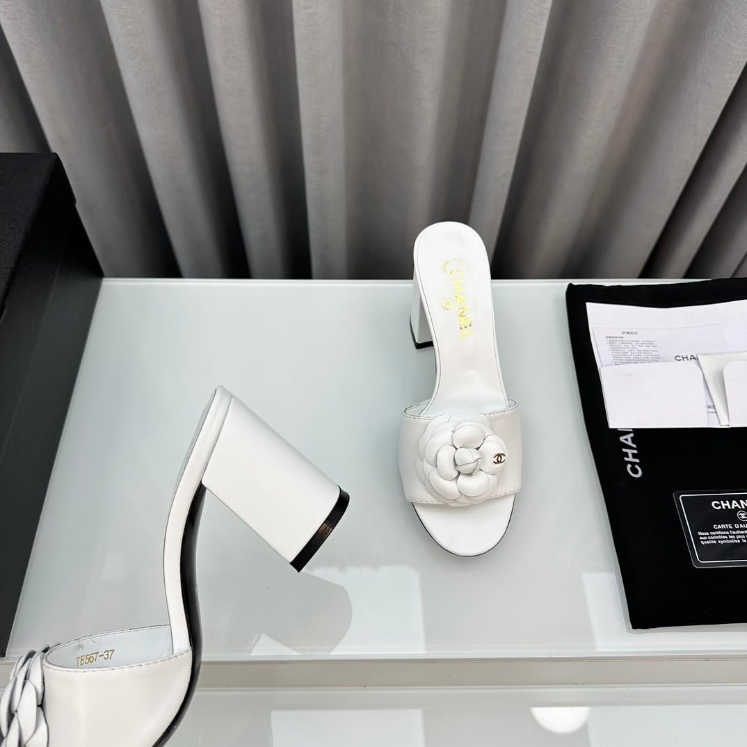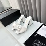 Chanel Camellia Medium Heel Slippers White