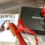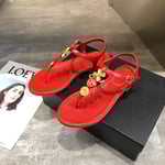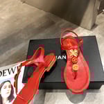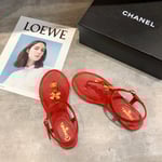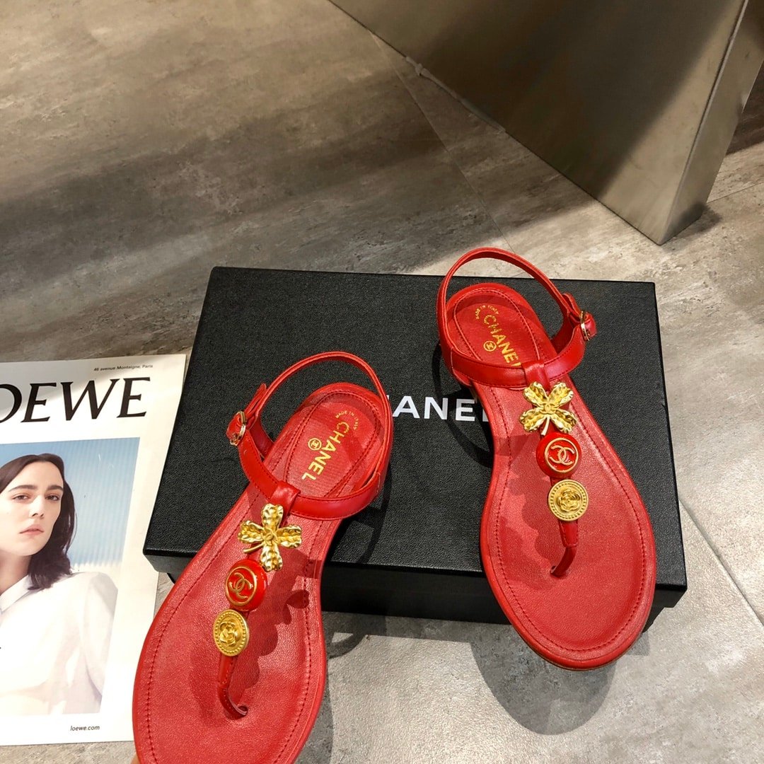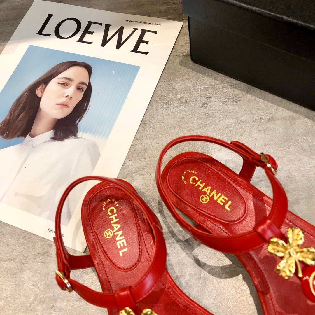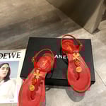 Chanel Camellia Thongs Sandals With Gold Leaf Clover Wine Red