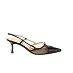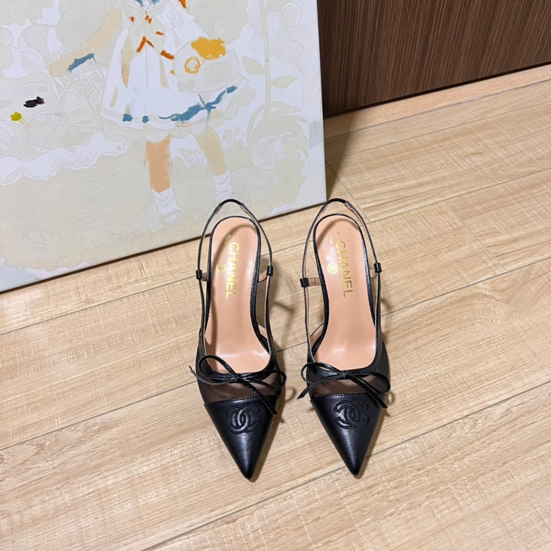 Chanel Cc Leather Pointy Toe Pumps Slingbacks Sandals Black