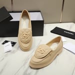 • Chanel Cc Nib Turnlock Moccasins Flat Loafers Light Yellow G45474 B15482 Nt966