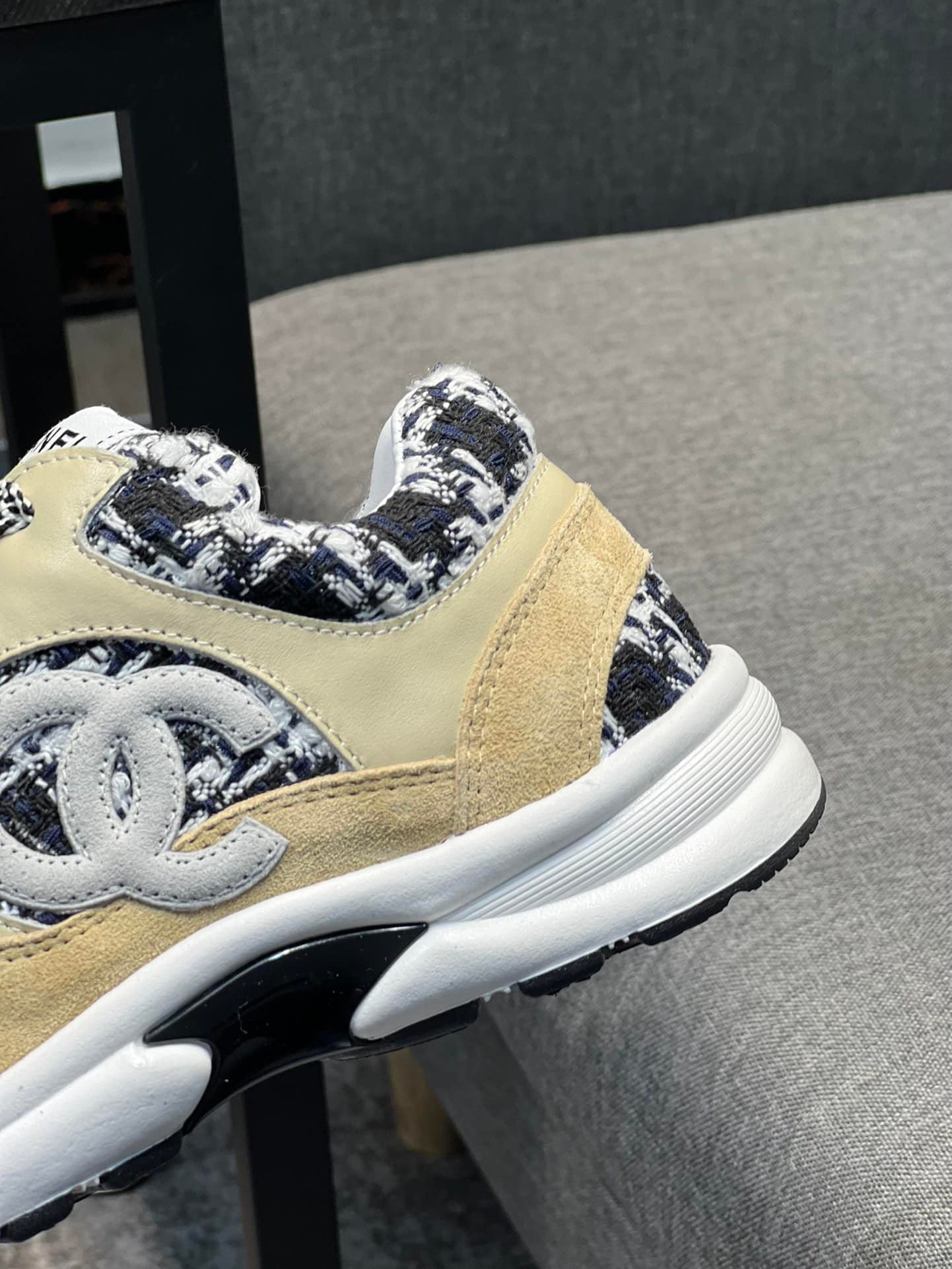 Chanel Coton Tweed Suede Calfskin Sneakers Black