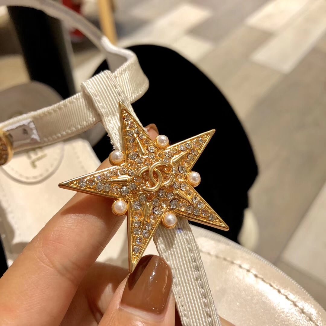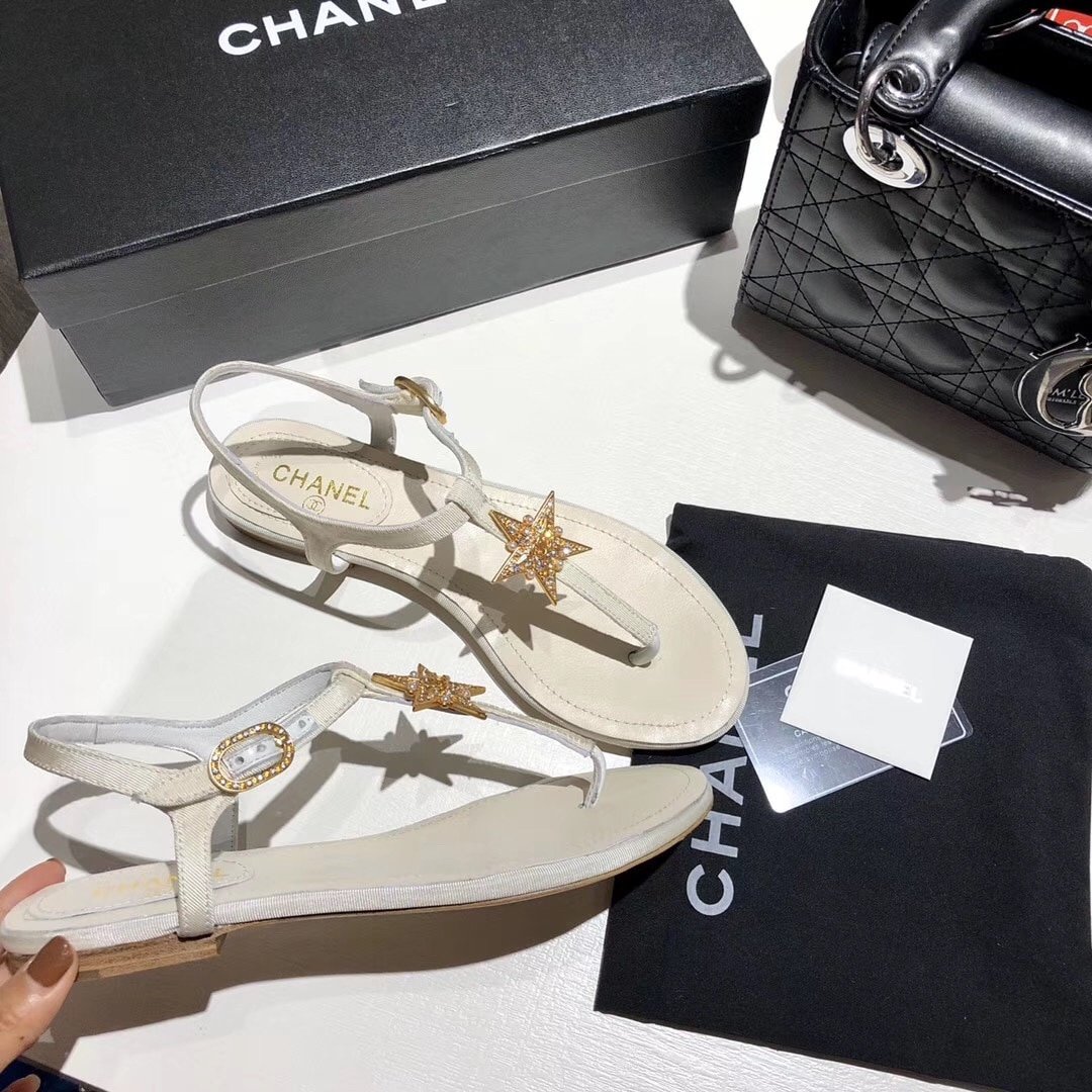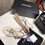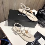 Chanel Crystal Pearl Thongs White Sandals With Gold Star