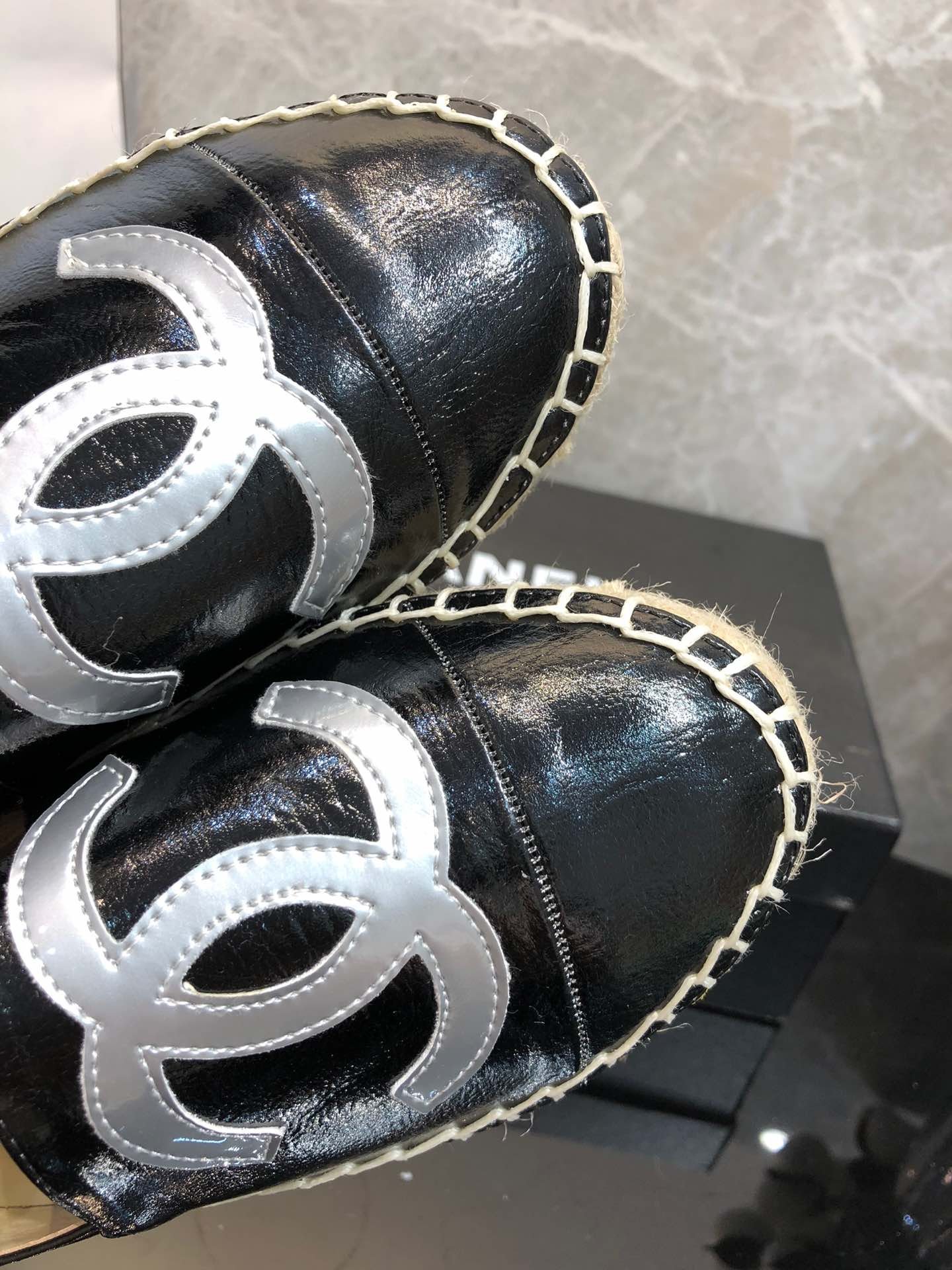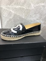 Chanel Embroidered Espadrille Leather Cap Toe Flats Black Cc