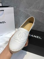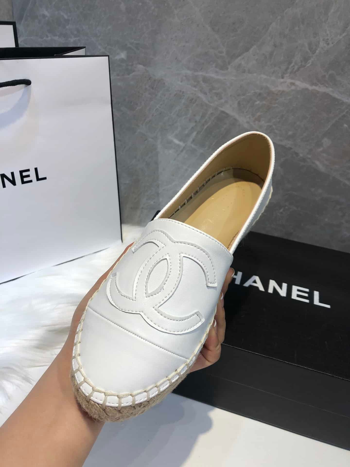 Chanel Embroidered Espadrille Leather Cap Toe Flats White