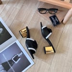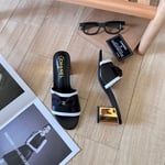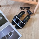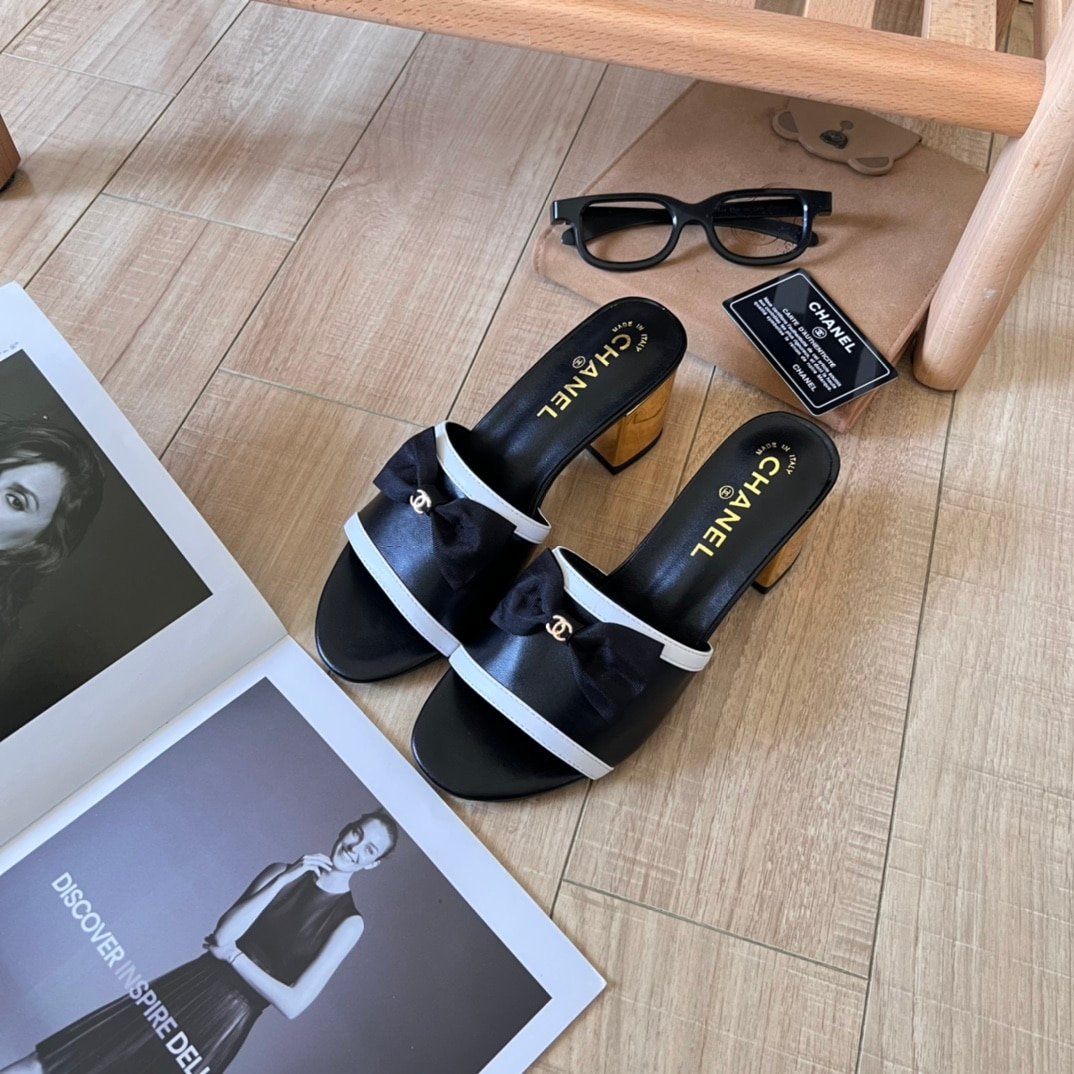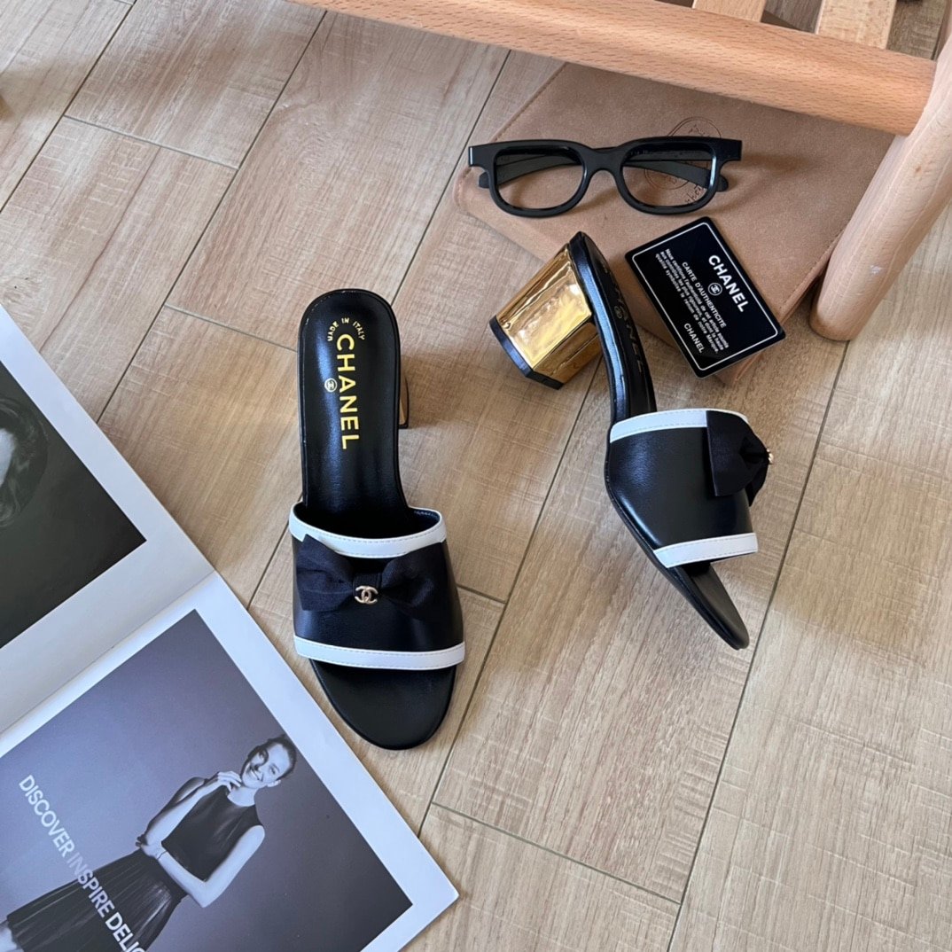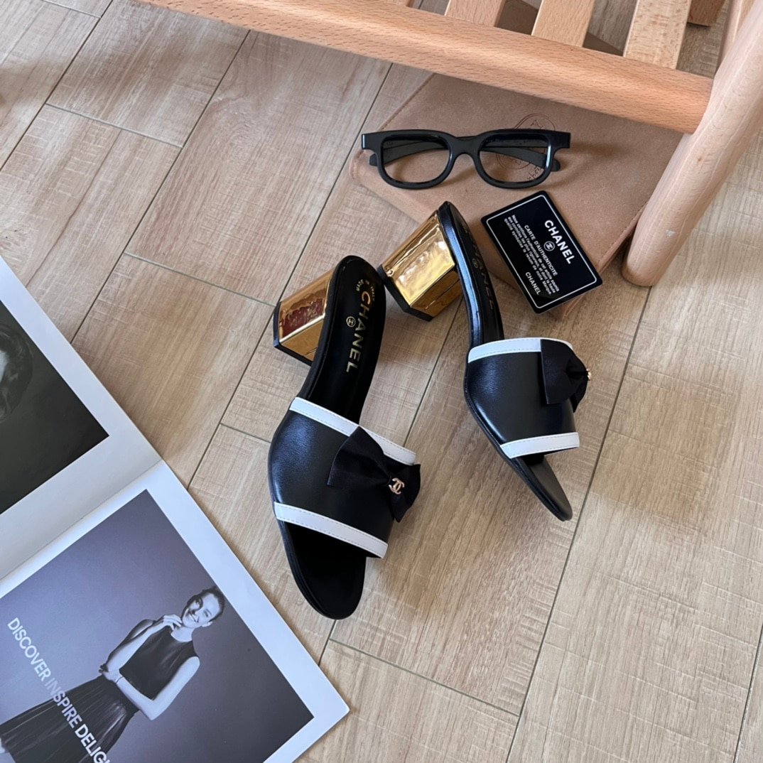 Chanel Grosgrain Ribbon Bow Mule Leather Gold Black