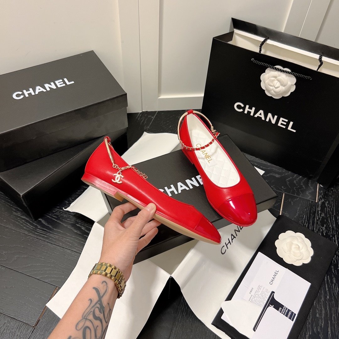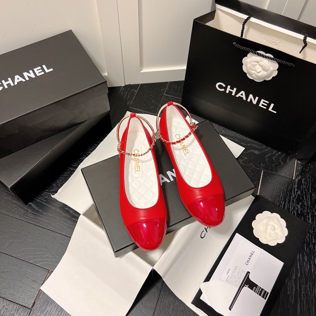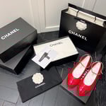 Chanel Interlocking Cc Logo Ballet Flats Red