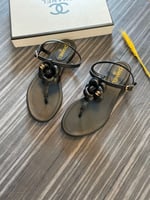 Chanel Jelly Black Rubber Camellia Sandals Black
