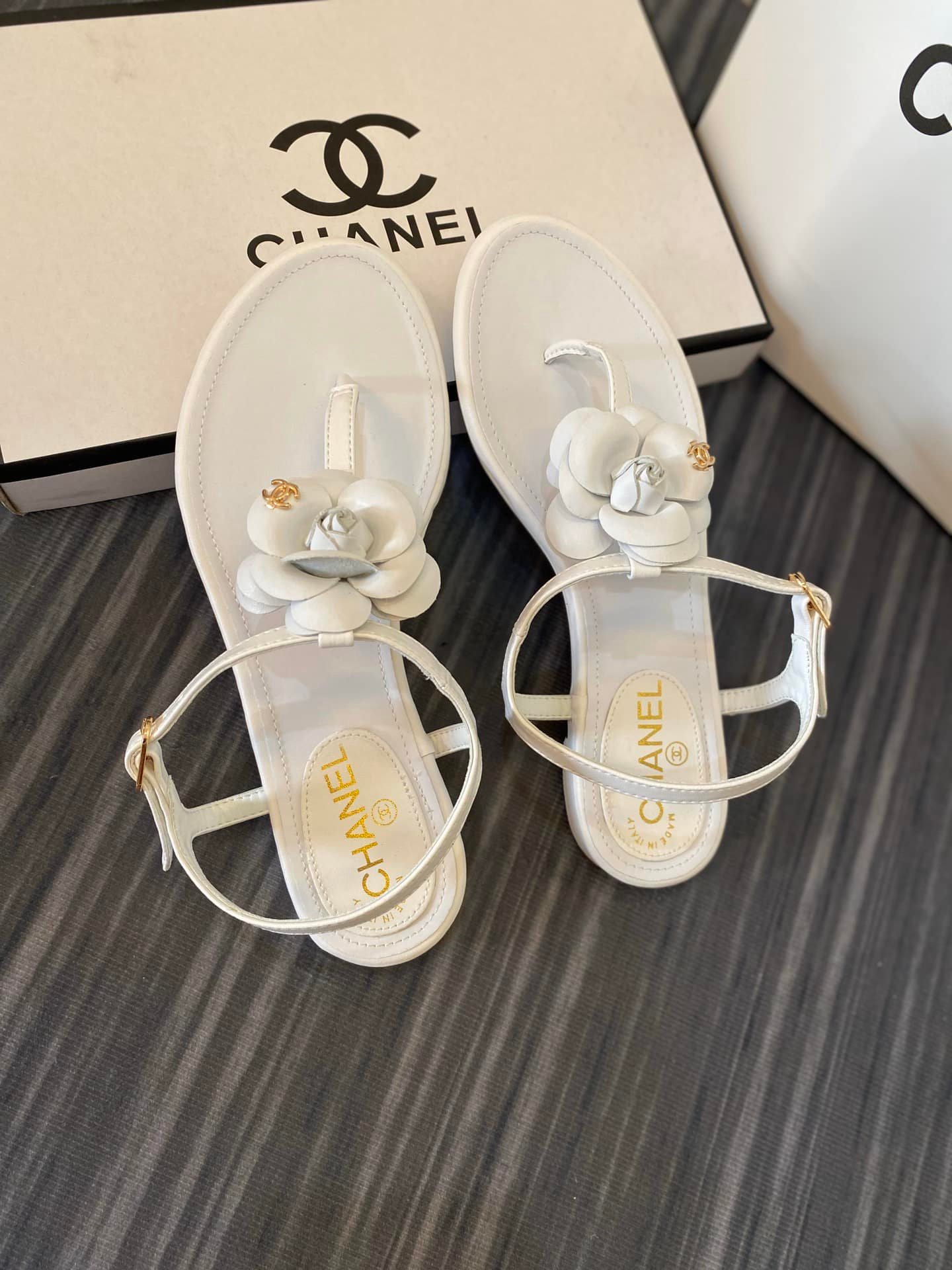 Chanel Jelly Rubber Camellia Sandals White