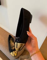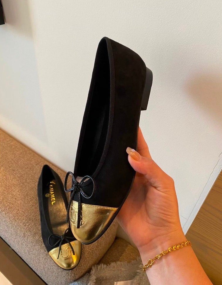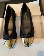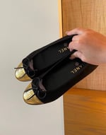Chanel Leather Cap Toe Ballet Flats Black Gold