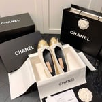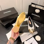 Chanel Leather Cap Toe Ballet Flats White Gold