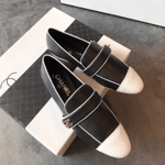 Chanel Leather Cc Cap Toe Slip On Loafers Black