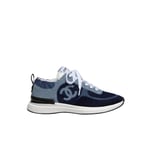 Chanel Neon Denim Lace Up Low Top Trainer Sneaker Blue G37494 Y55237 K2847