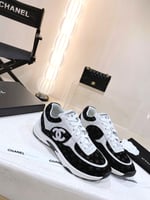 • Chanel Printed Suede Calfskin Sneakers White And Black G39230 X56653 94305