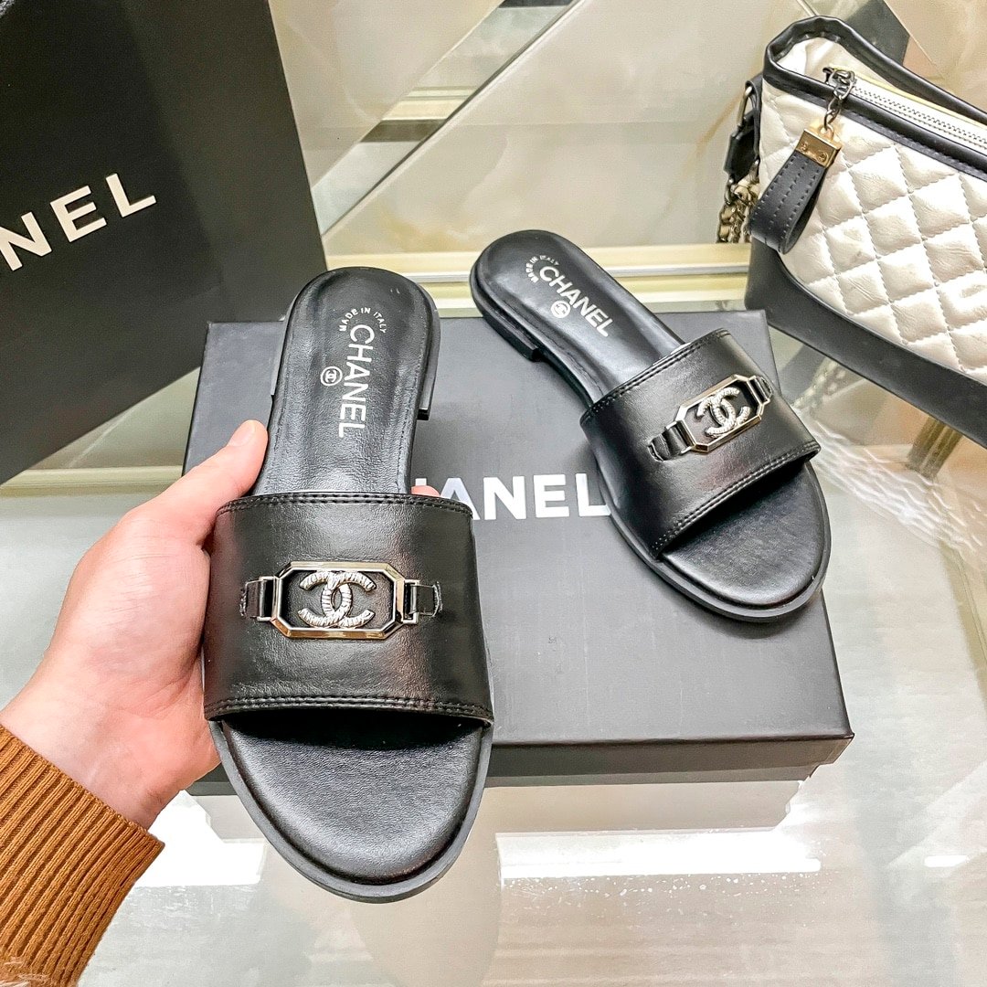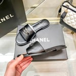 Chanel Slippers With Cc Silver Hardware Black G45172 B13906 Nq961