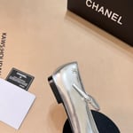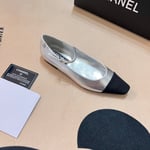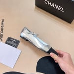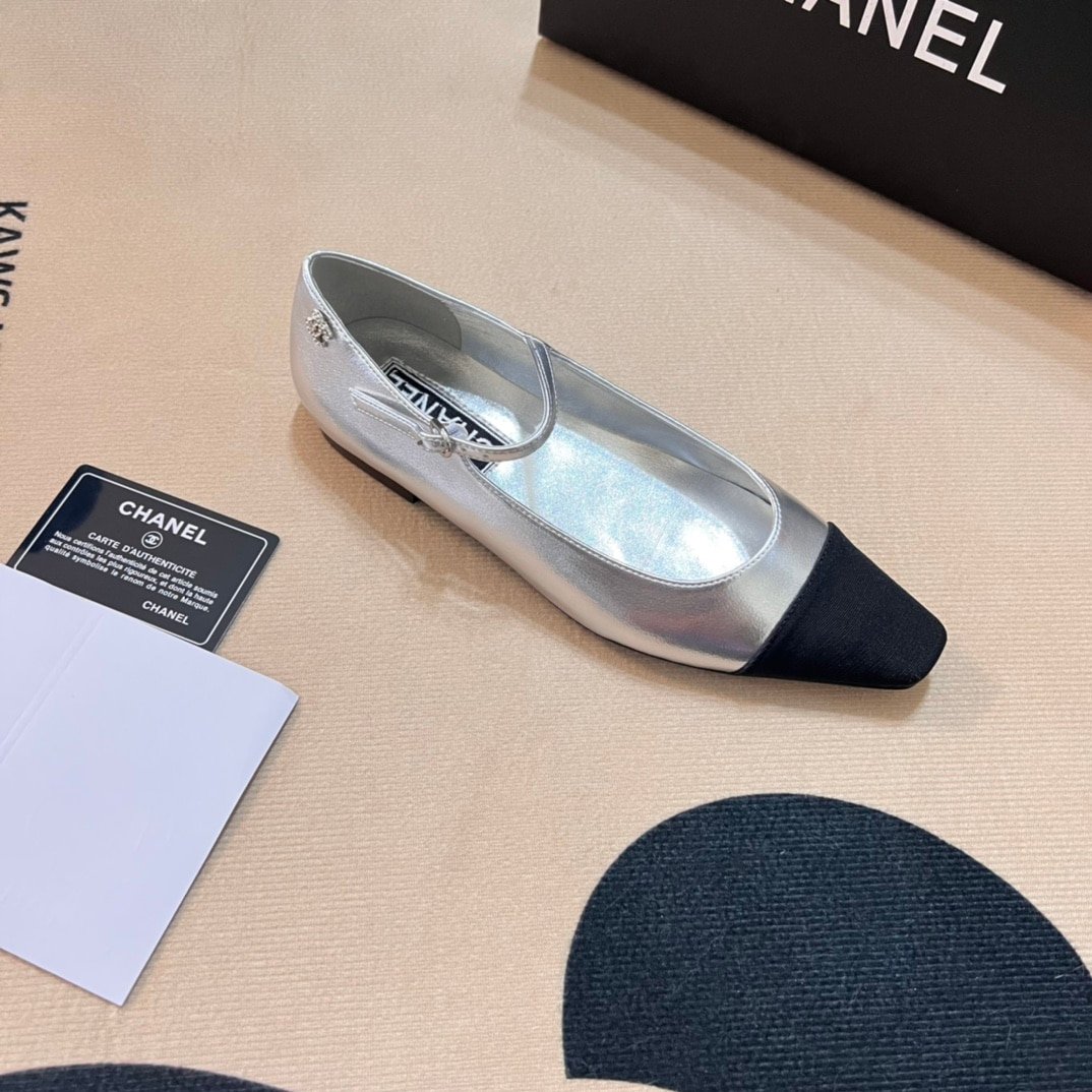 Chanel Square Toe Ballet Flats Black Silver