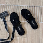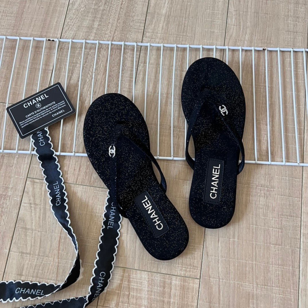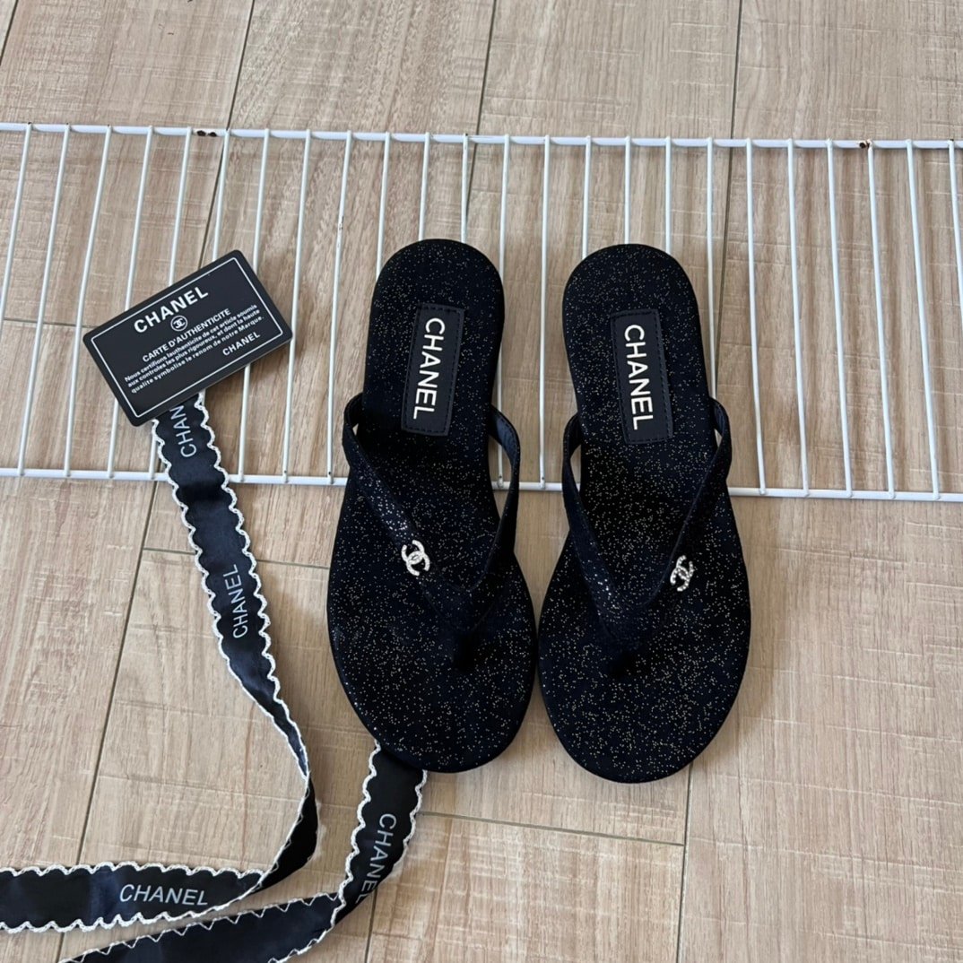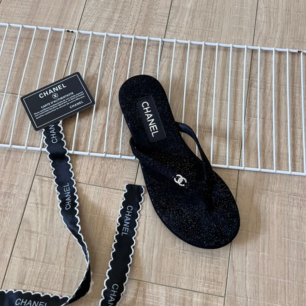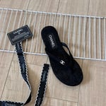 Chanel Thongs Purl Fabric With Silver Cc Logo In Black