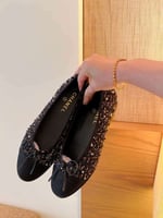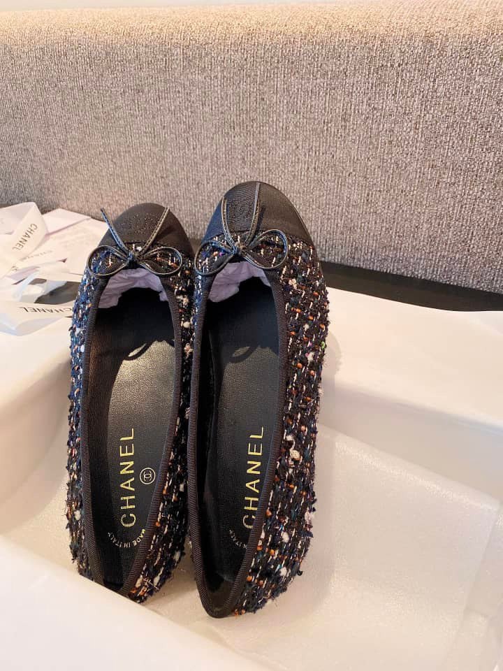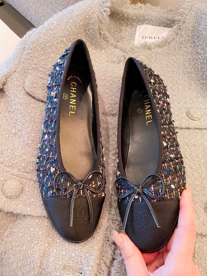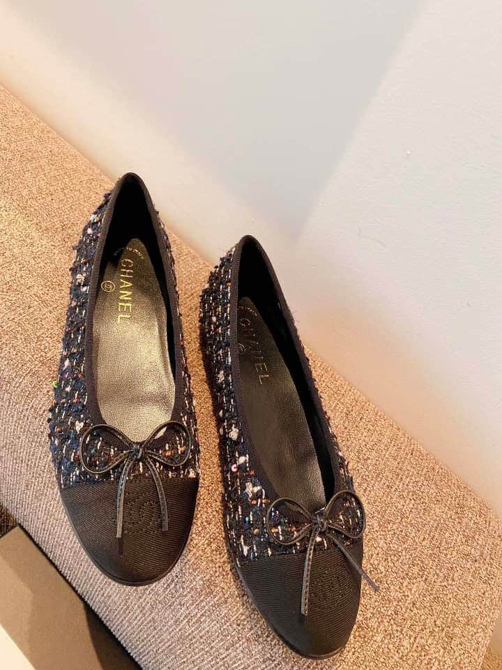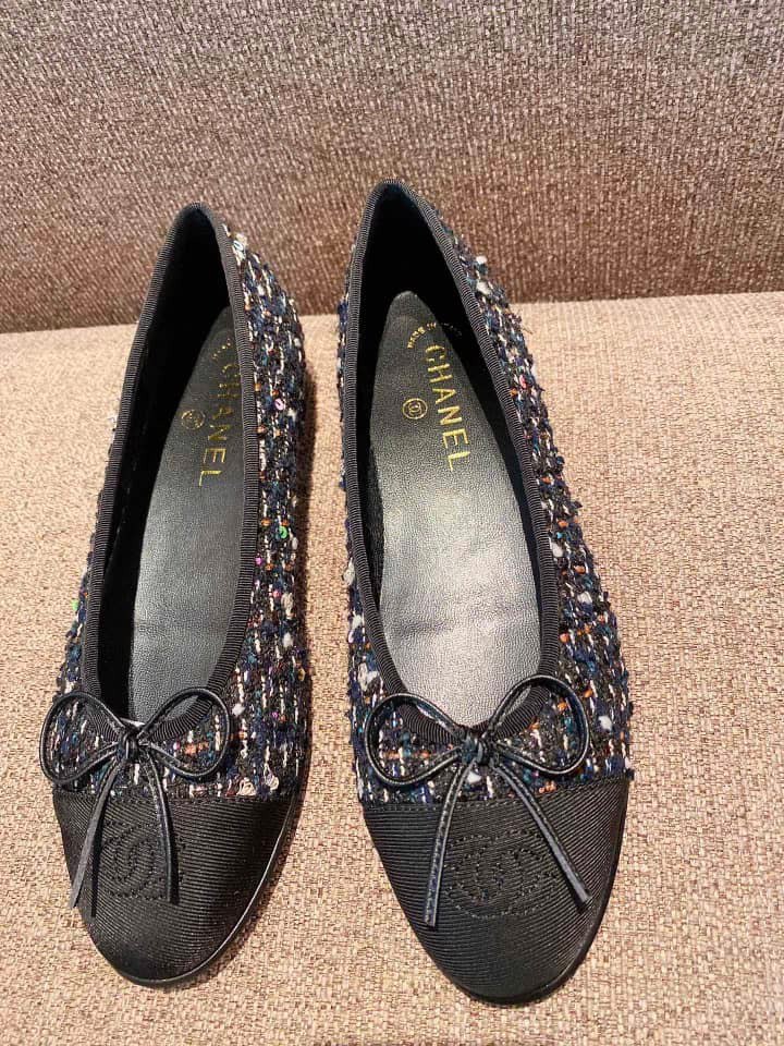 Chanel Tweed Cap Toe Ballerina Flats Black