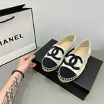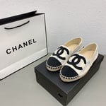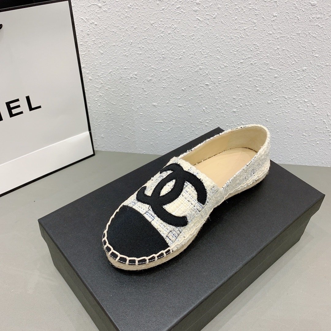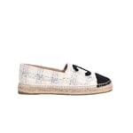 Chanel Tweed Cc Espadrilles Slip On White Blue Black