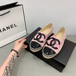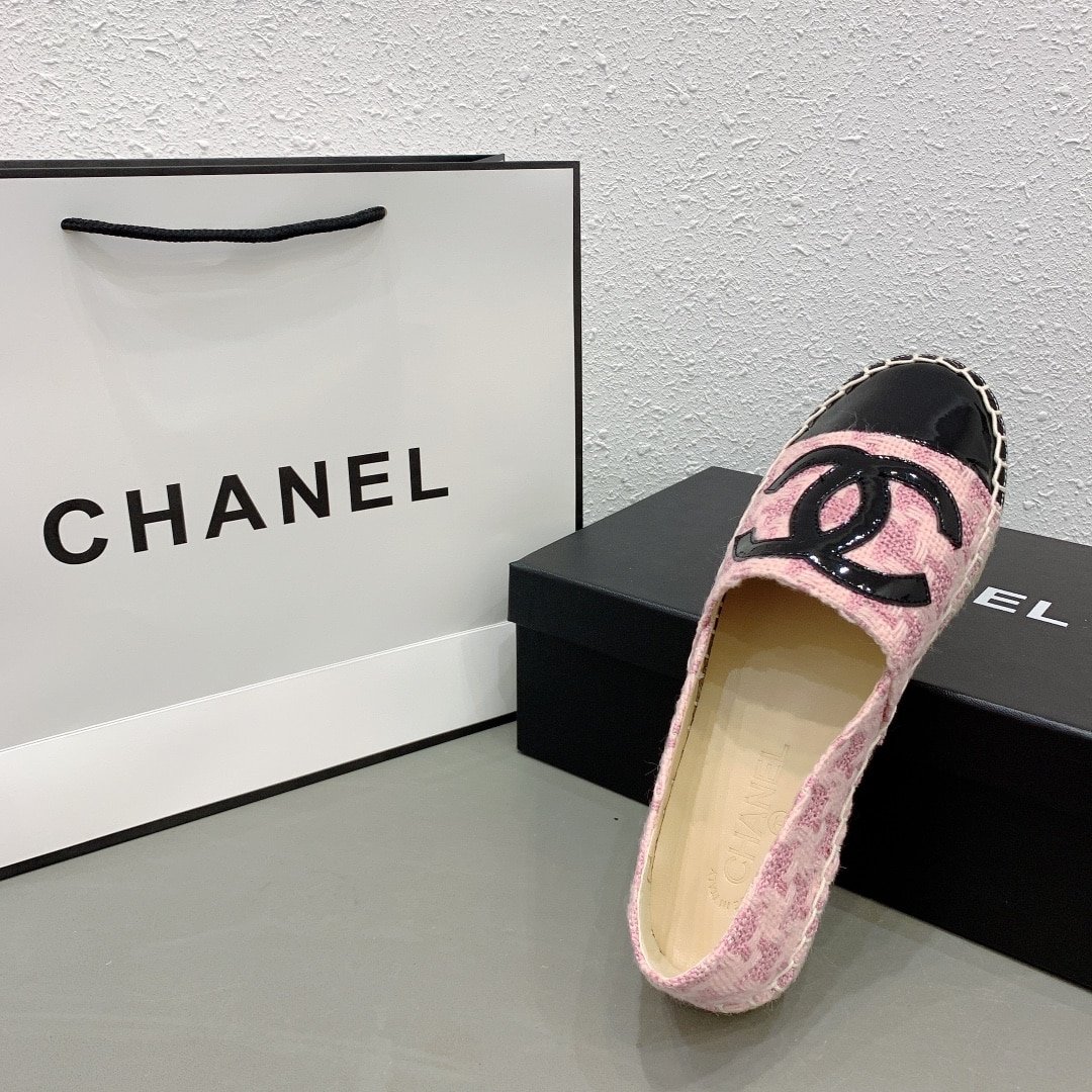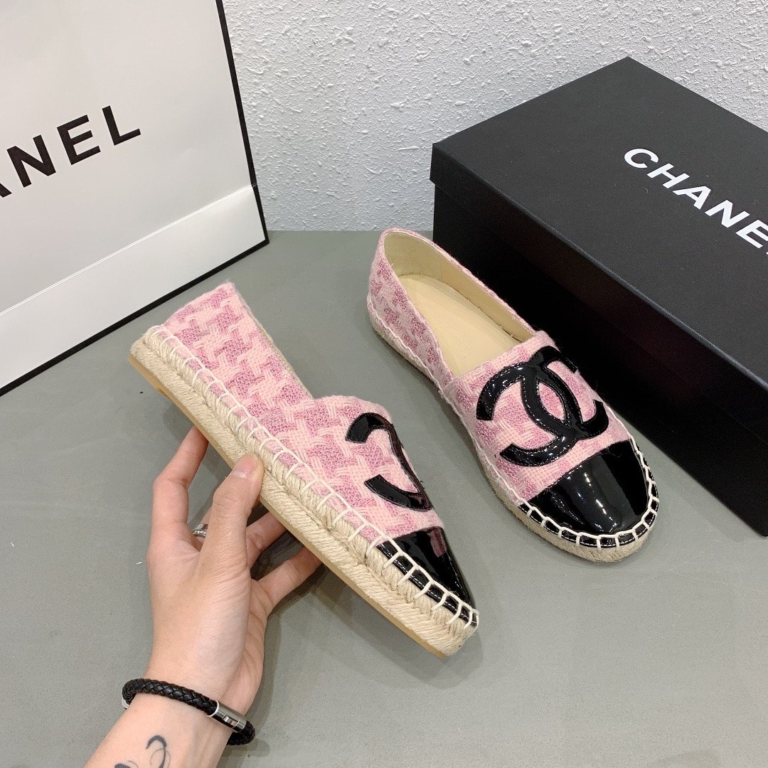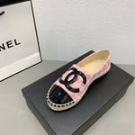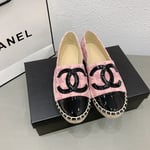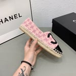 Chanel Tweed Patent Cc Espadrilles Slip On Pink Black