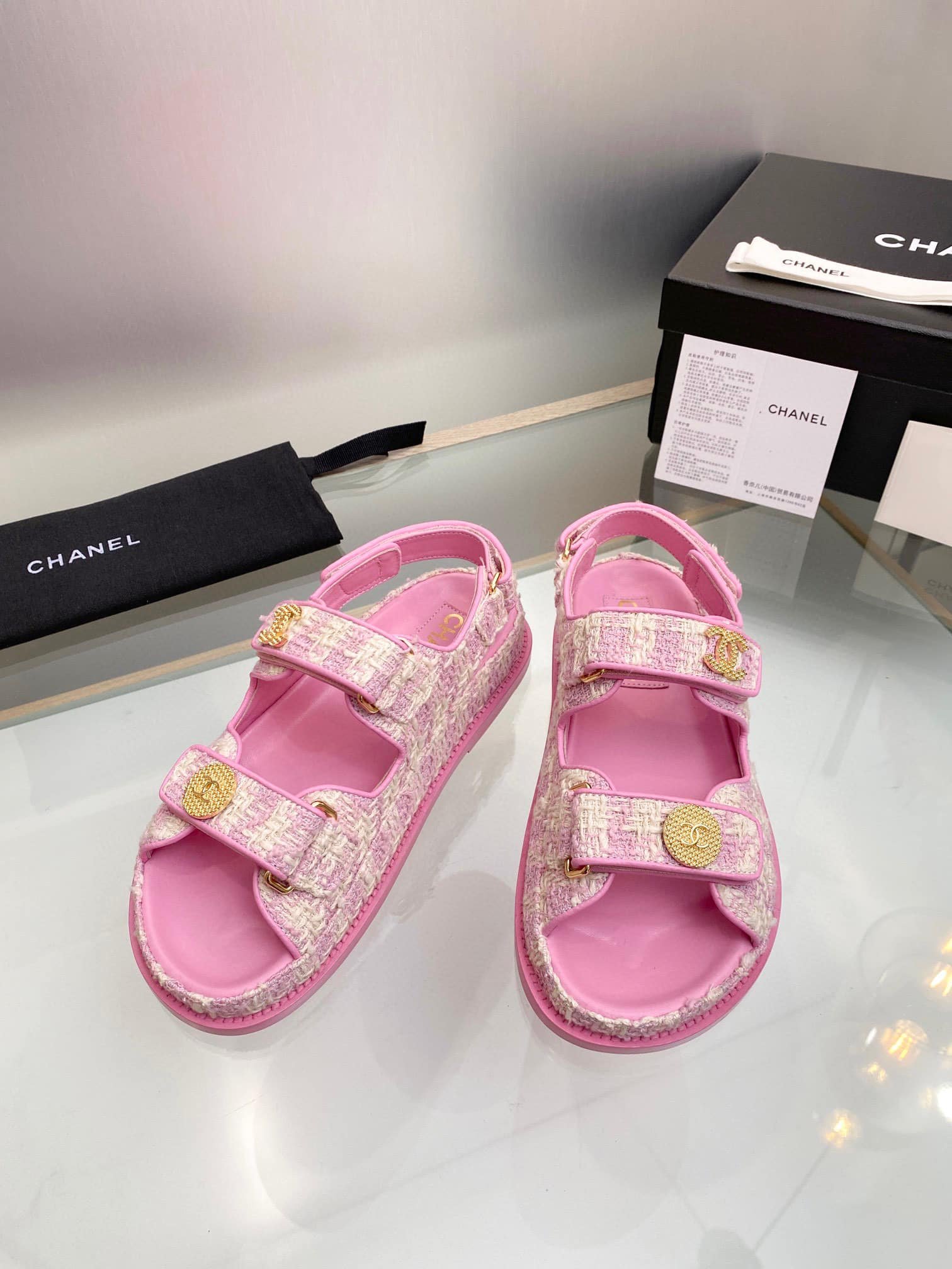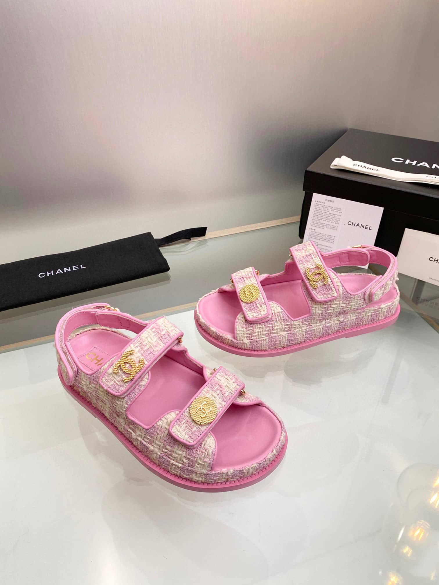 Chanel Tweed Sandal Pink Ecru Cotton G35927 X56999 K5945